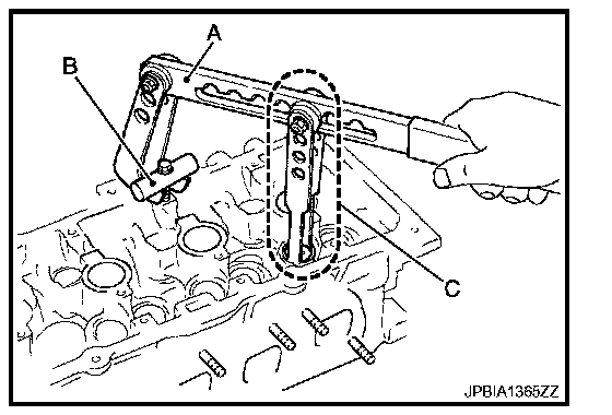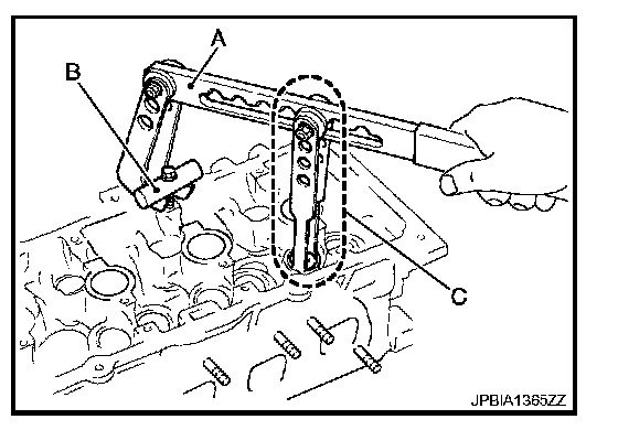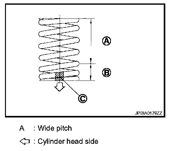 - Install narrow pitch (B) end [paint mark (C)] to cylinder head side (valve spring seat side).