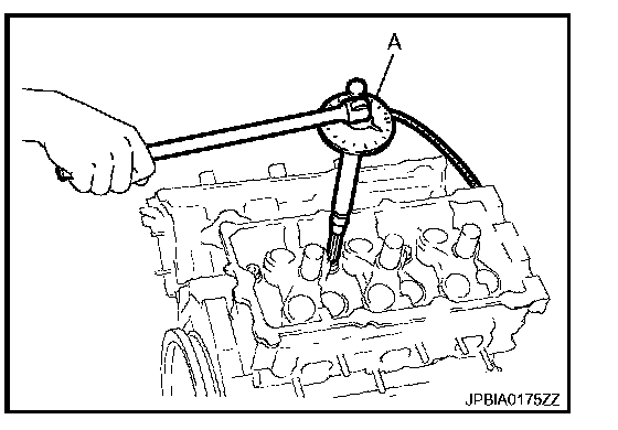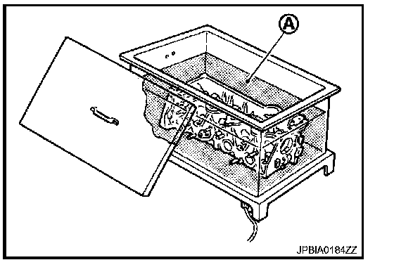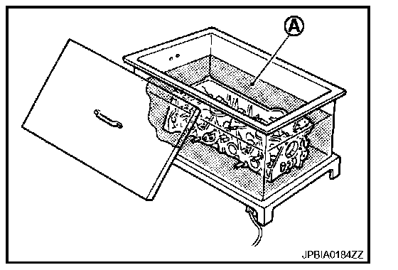 b. Heat cylinder head to 110 to 130�C (230 to 266�F) by soaking in heated oil (A).