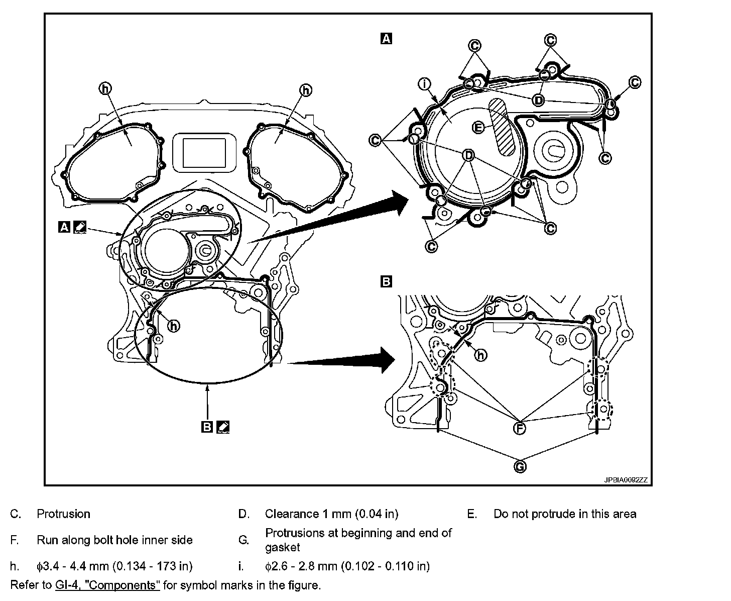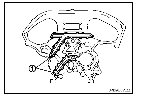 b. Apply liquid gasket with the tube presser (commercial service tool) to rear timing chain case back side as shown in the figure.