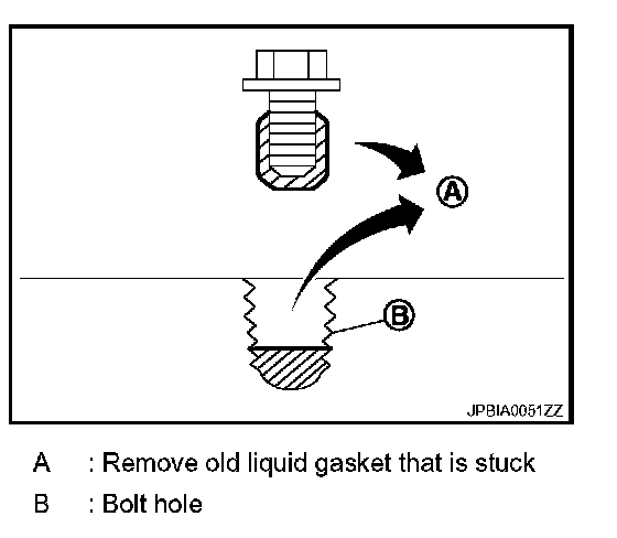 7. Remove old liquid gasket from bolt hole and thread.