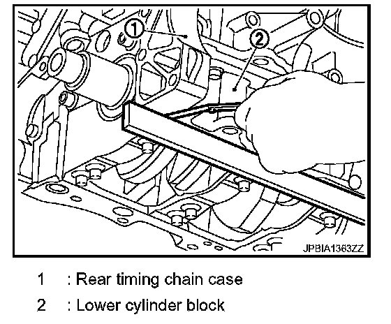 1. Install rear timing chain case as follows: