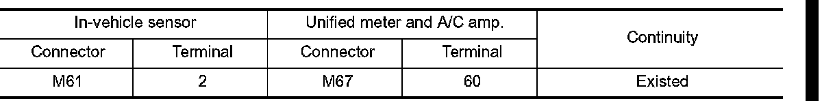 3. Check continuity between in-vehicle sensor harness connector and unified meter and A/C amp. harness connector.