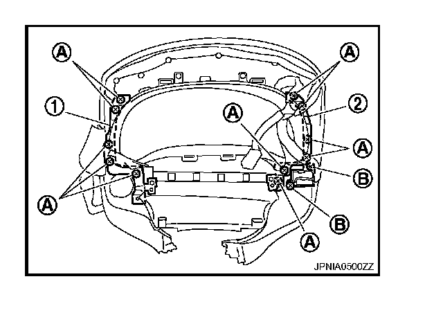 2. Remove screws (A) and remove bracket RH (1), LH (2).