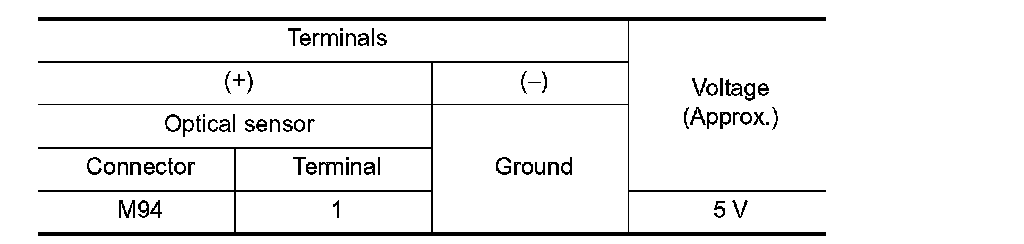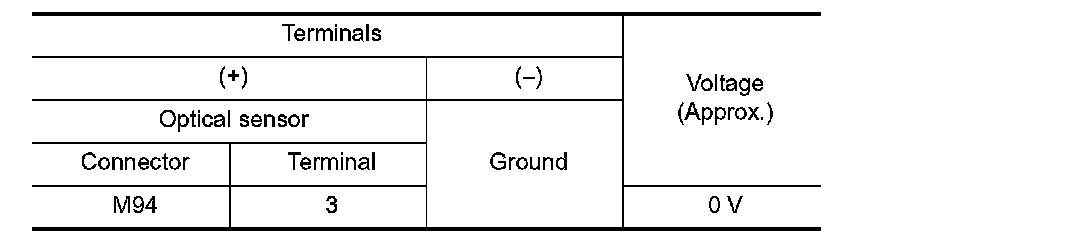 With illuminating the optical sensor, check the voltage between the optical sensor harness connector and the ground.