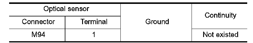 Check the continuity between the optical sensor harness connector and the ground.