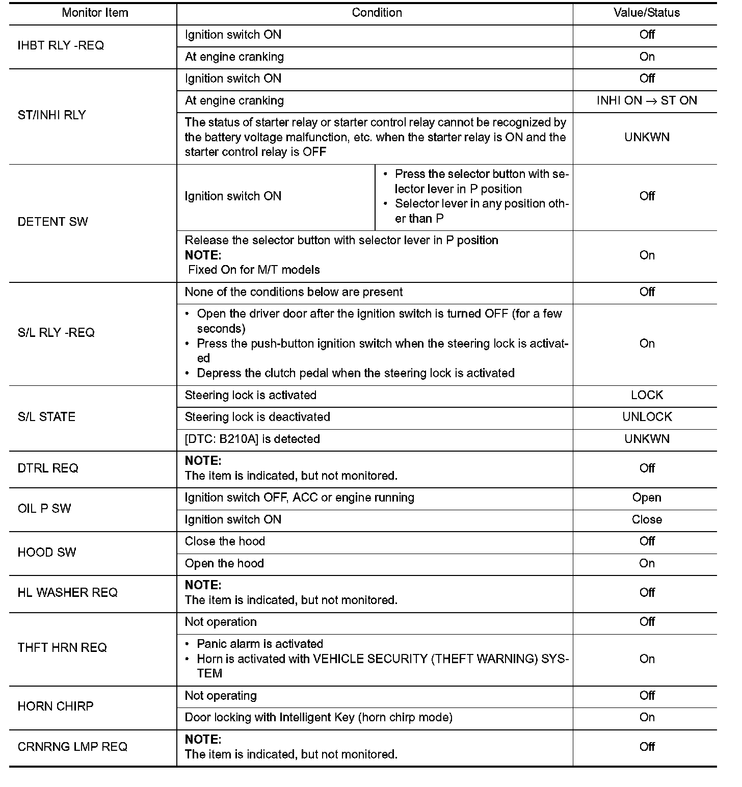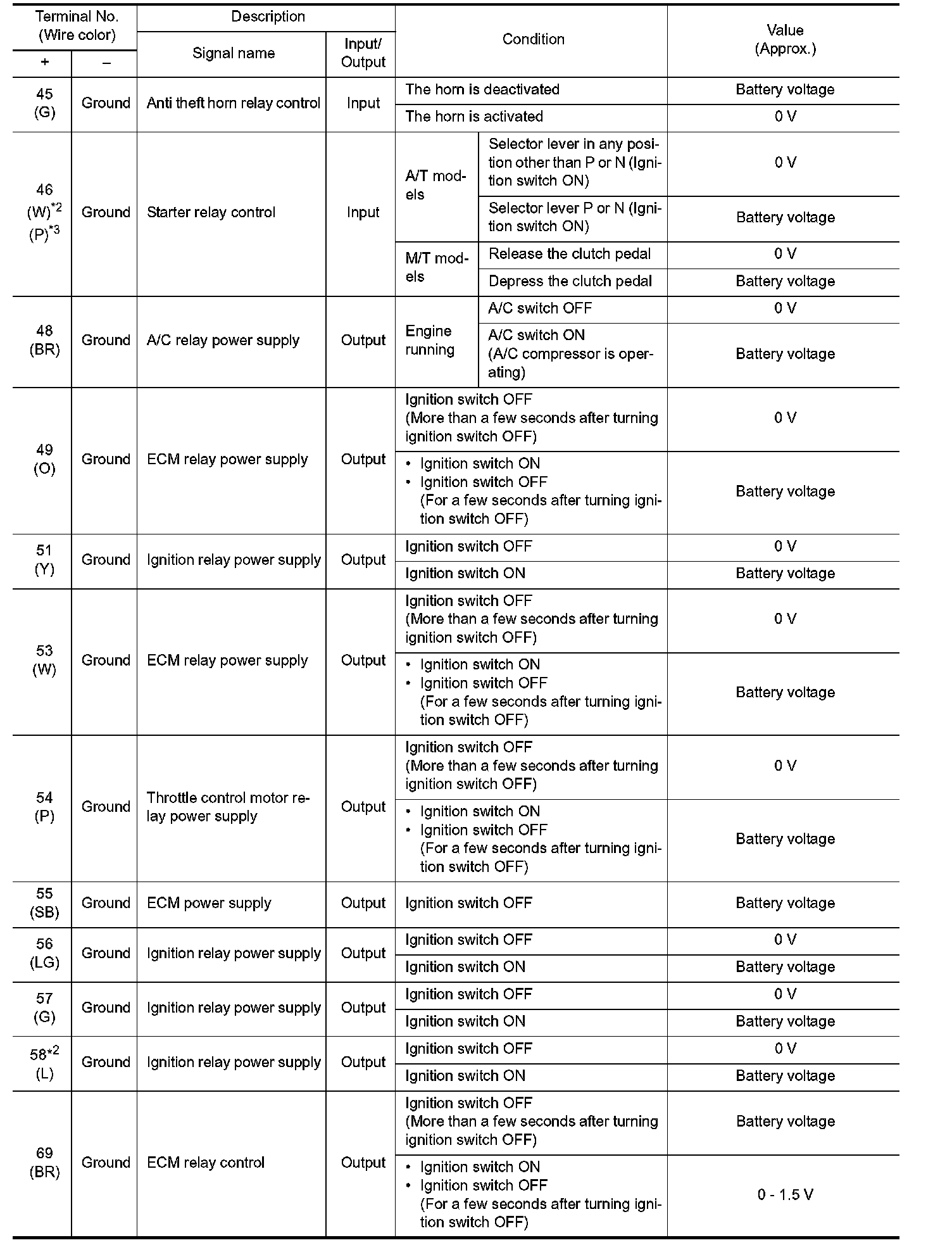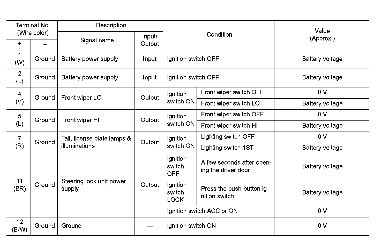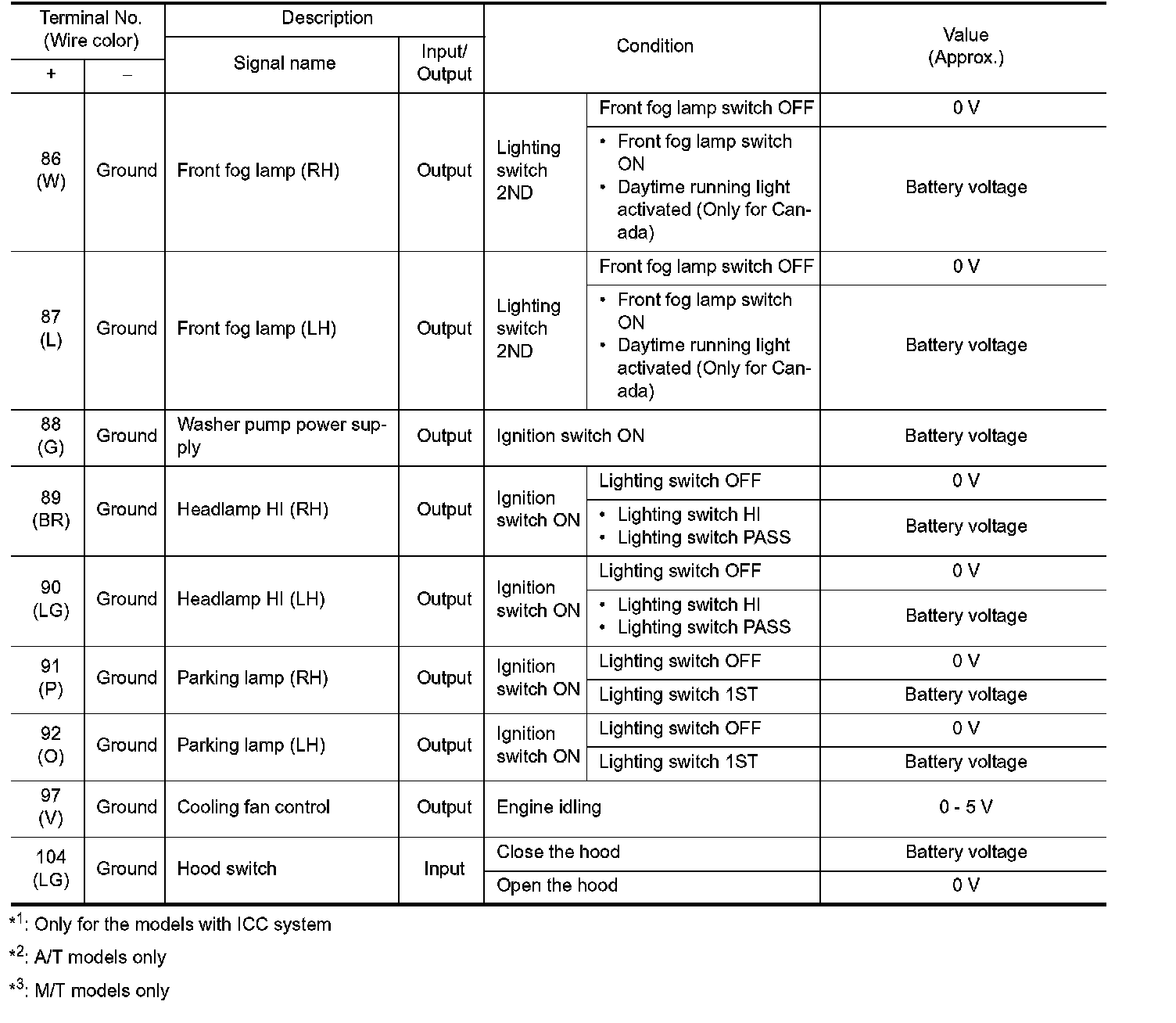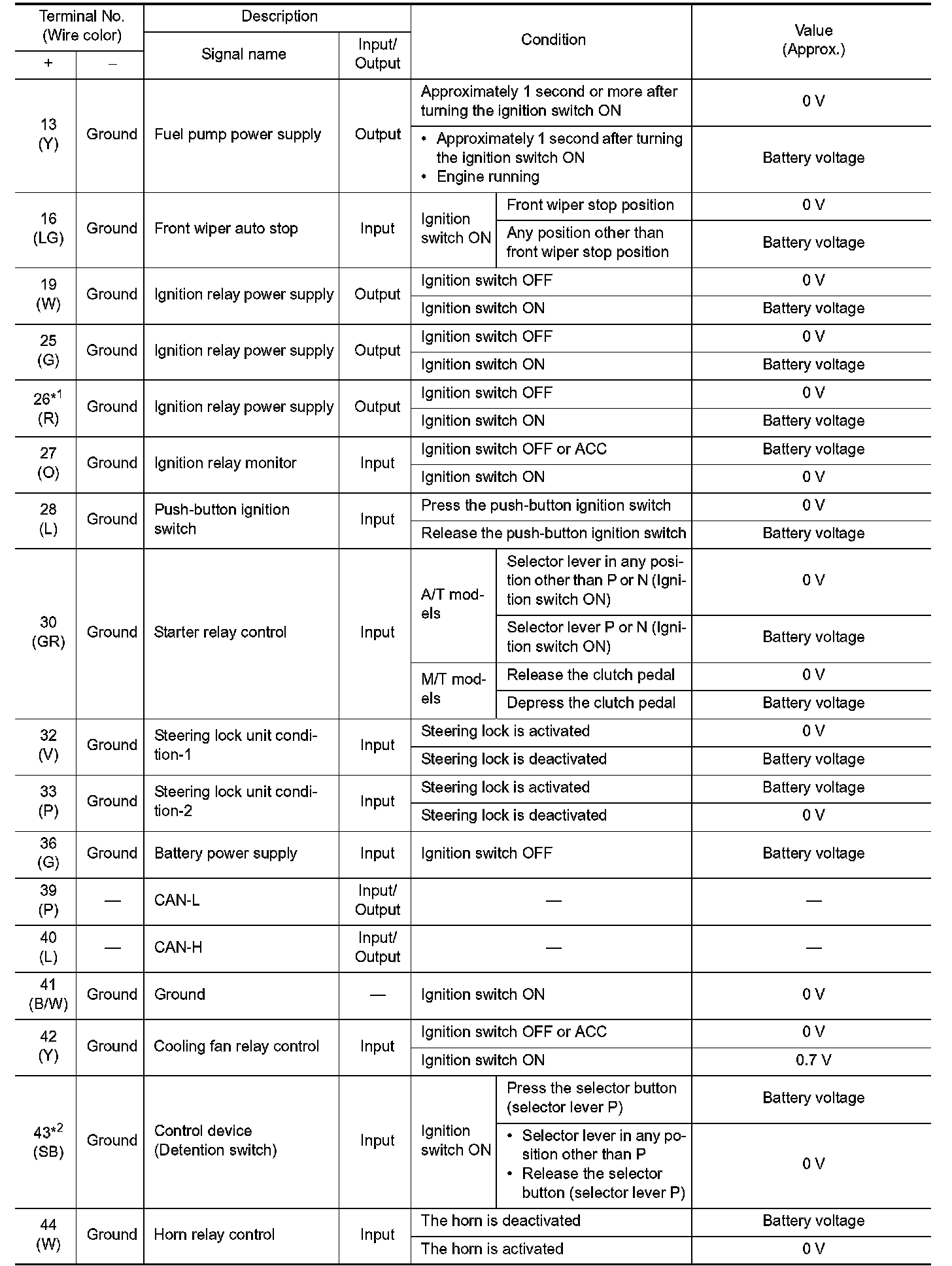 Pinout Values and Diagnostic Parameters