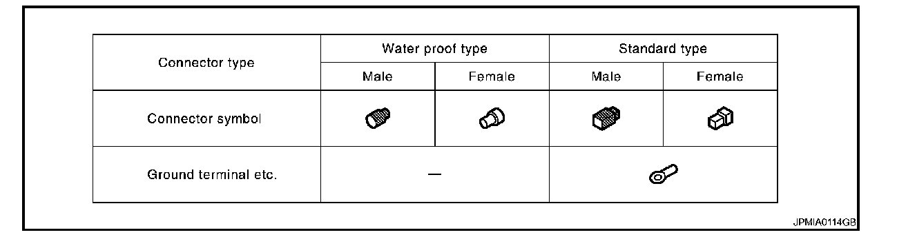 Main symbols of connector (in Harness Layout) are indicated in the below.