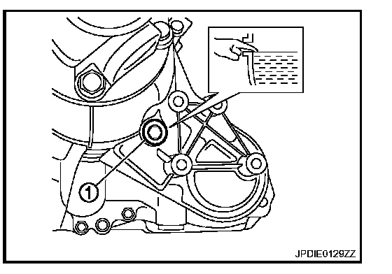 1. Remove filler plug (1) and gasket. Then fill fluid up to mounting hole for the filler plug.