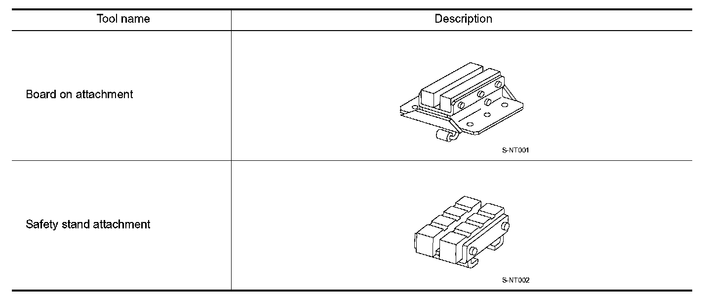 - Since the vehicle's center of gravity changes when removing main parts on the front side (engine, transmission, suspension etc.), support a jack up point on the rear side garage jack with a mission jack or equivalent.