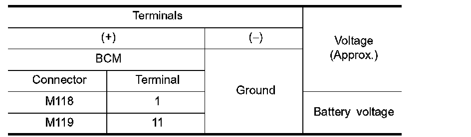 3. Check voltage between BCM harness connector and ground.