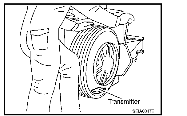1. Deflate tire. Unscrew transmitter retaining nut and allow transmitter to fall into tire.