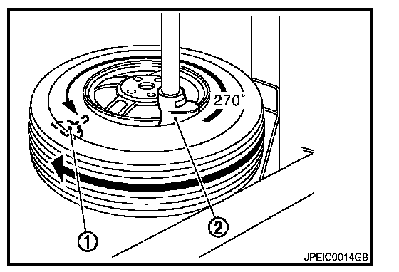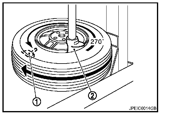 (1) is 270 degree from mounting head (2) when second side of tire is fitted.