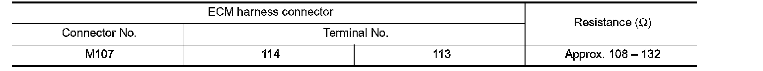 2. Check the resistance between the ECM harness connector terminals.