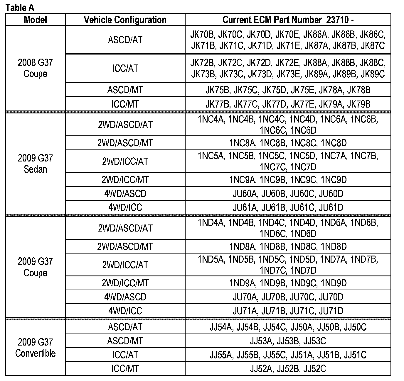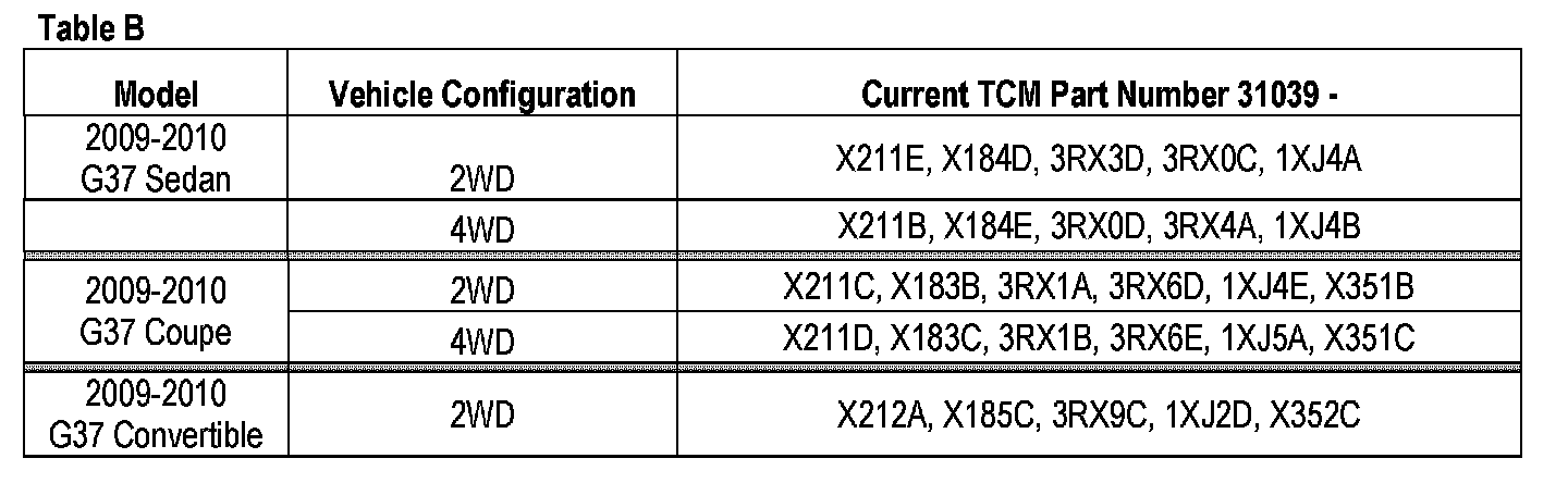 2009-2010 G37 AT vehicles: Proceed to TCM Reprogramming.