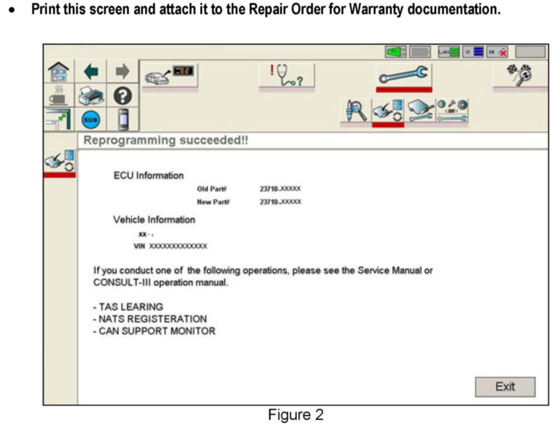 3. If this bulletin applies and you have performed ECM reprogramming the screen in Figure 2 appears when reprogramming is complete.