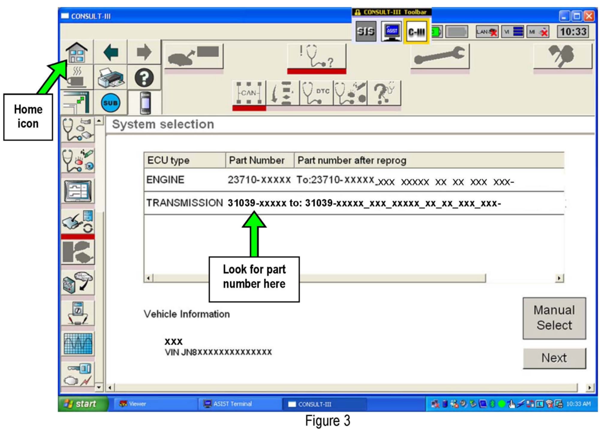 3. On your C-III screen look for a Transmission Part Number in the Part Number column (see Figure 3 example).