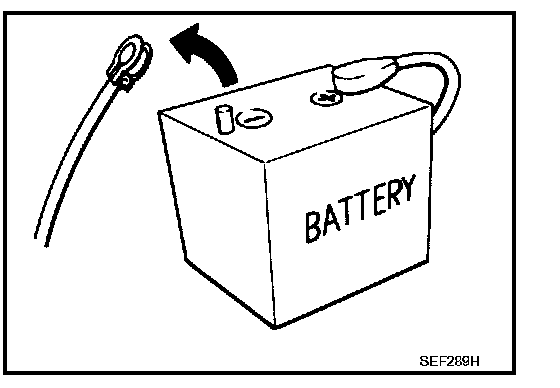 - Before removing parts, turn ignition switch OFF and then disconnect negative battery cable.