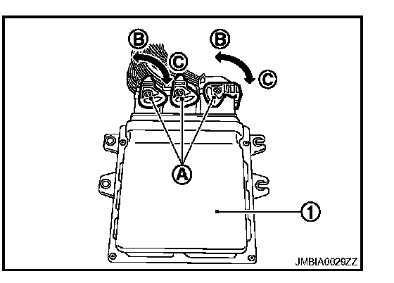 - Before connecting or disconnecting the ECM harness connector, turn ignition switch OFF and disconnect negative battery cable. Failure to do so may damage the ECM because battery voltage is applied to ECM even if ignition switch is turned OFF.