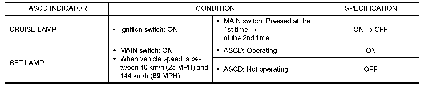 Check ASCD indicator under the following conditions.