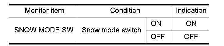 3. Check "SNOW MODE SW" indication under the following conditions.