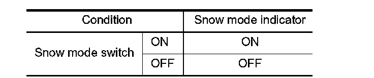 2. Check the snow mode indicator in the snow mode switch under the following condition.