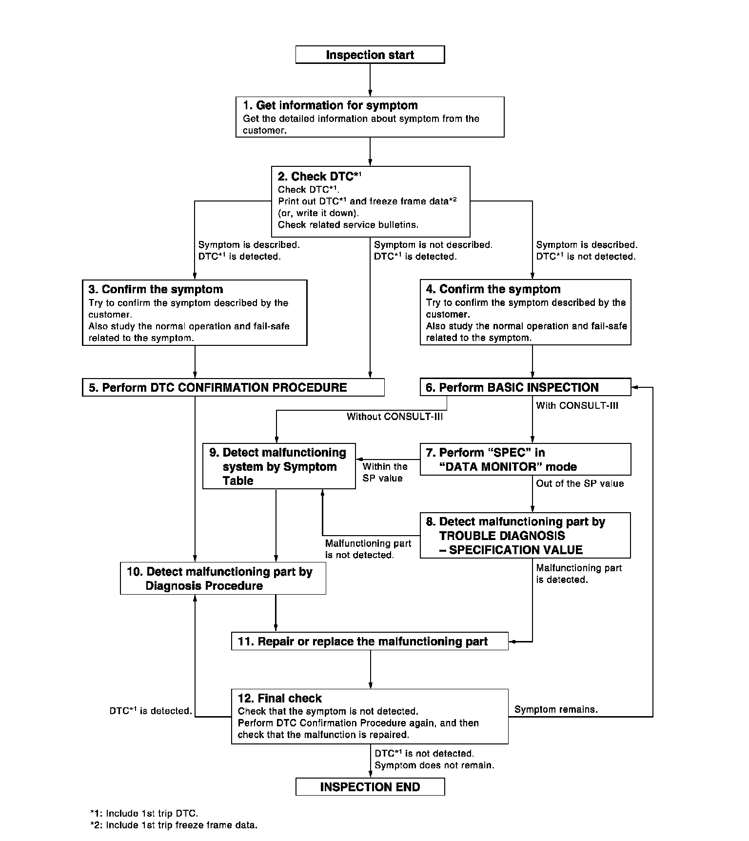 - Study the relationship between the cause detected by DTC and the symptom described by the customer.