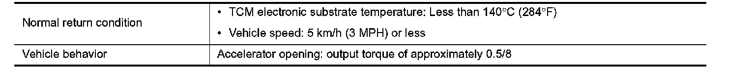 The TCM becomes the protection control status temporarily to protect the safety when the safety of TCM and transmission is lost. It automatically returns to the normal status if the safety is secured.
