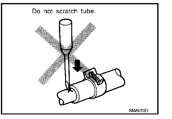 - To prevent damage to rubber hose, do not pry off rubber hose with tapered tool or screwdriver.