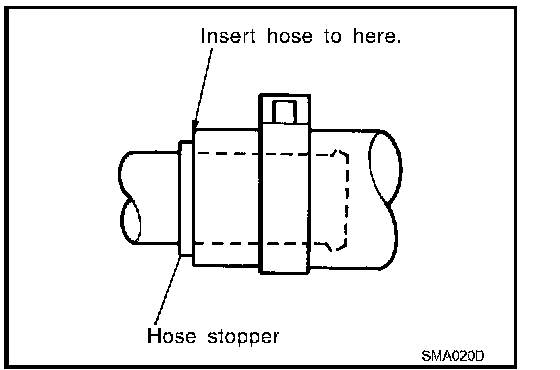 - To reinstall the rubber hose securely, make sure that hose insertion length and orientation is correct. (If tube is equipped with hose stopper, insert rubber hose into tube until it butts up against hose stopper.)
