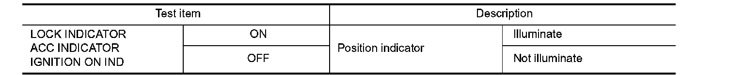 Check push-button ignition switch ("LOCK INDICATOR", "ACC INDICATOR" and "IGNITION ON IND") in