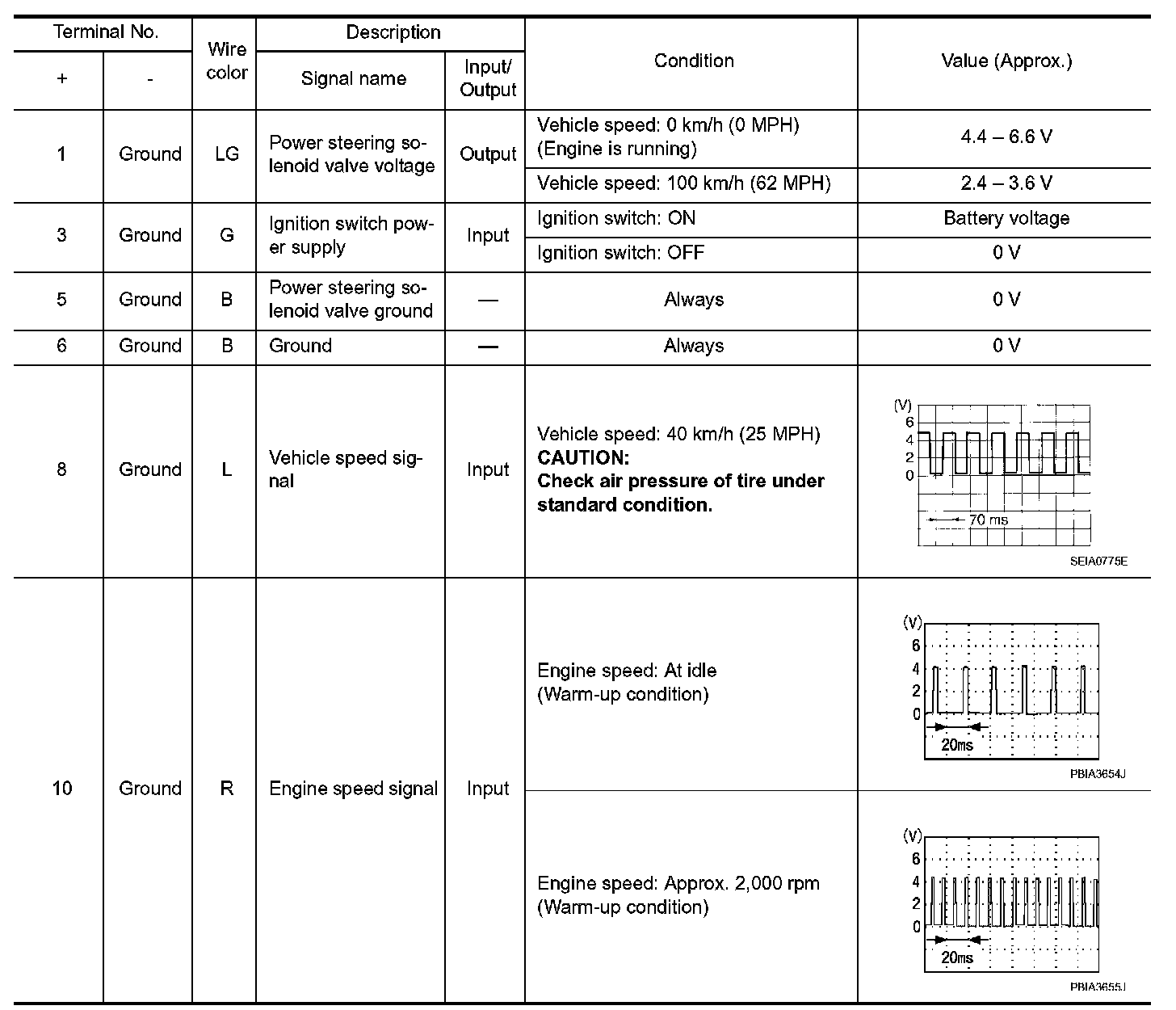 Pinout Values and Diagnostic Parameters