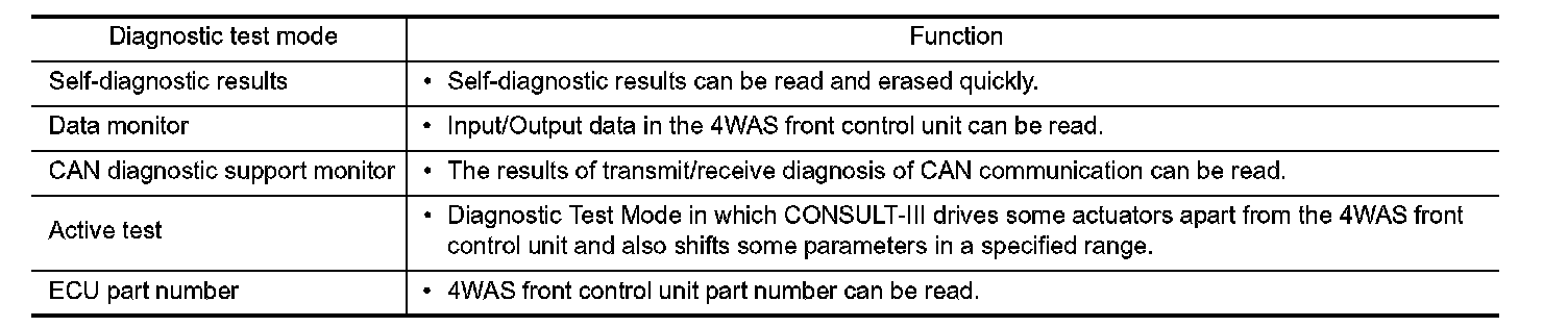 CONSULT-III Function [4WAS(FRONT)]