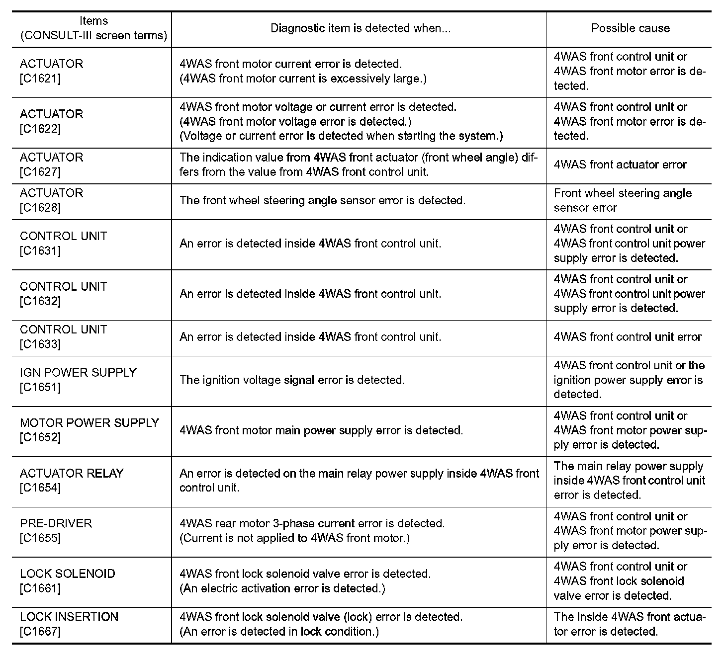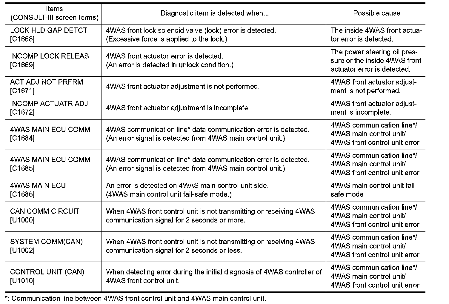 DIAGNOSIS SYSTEM (4WAS FRONT CONTROL UNIT)