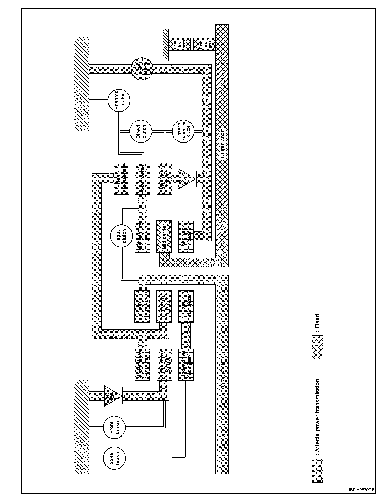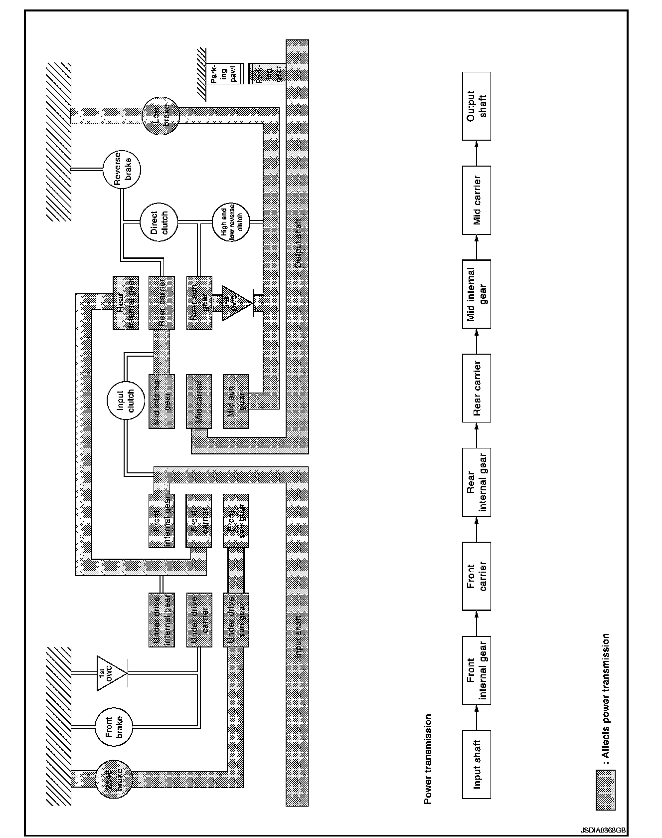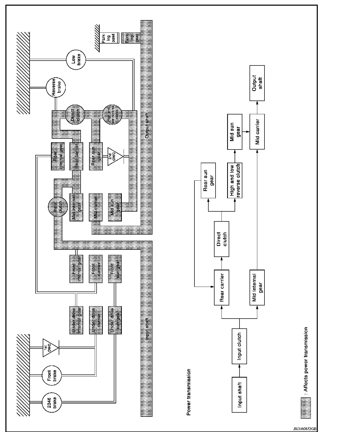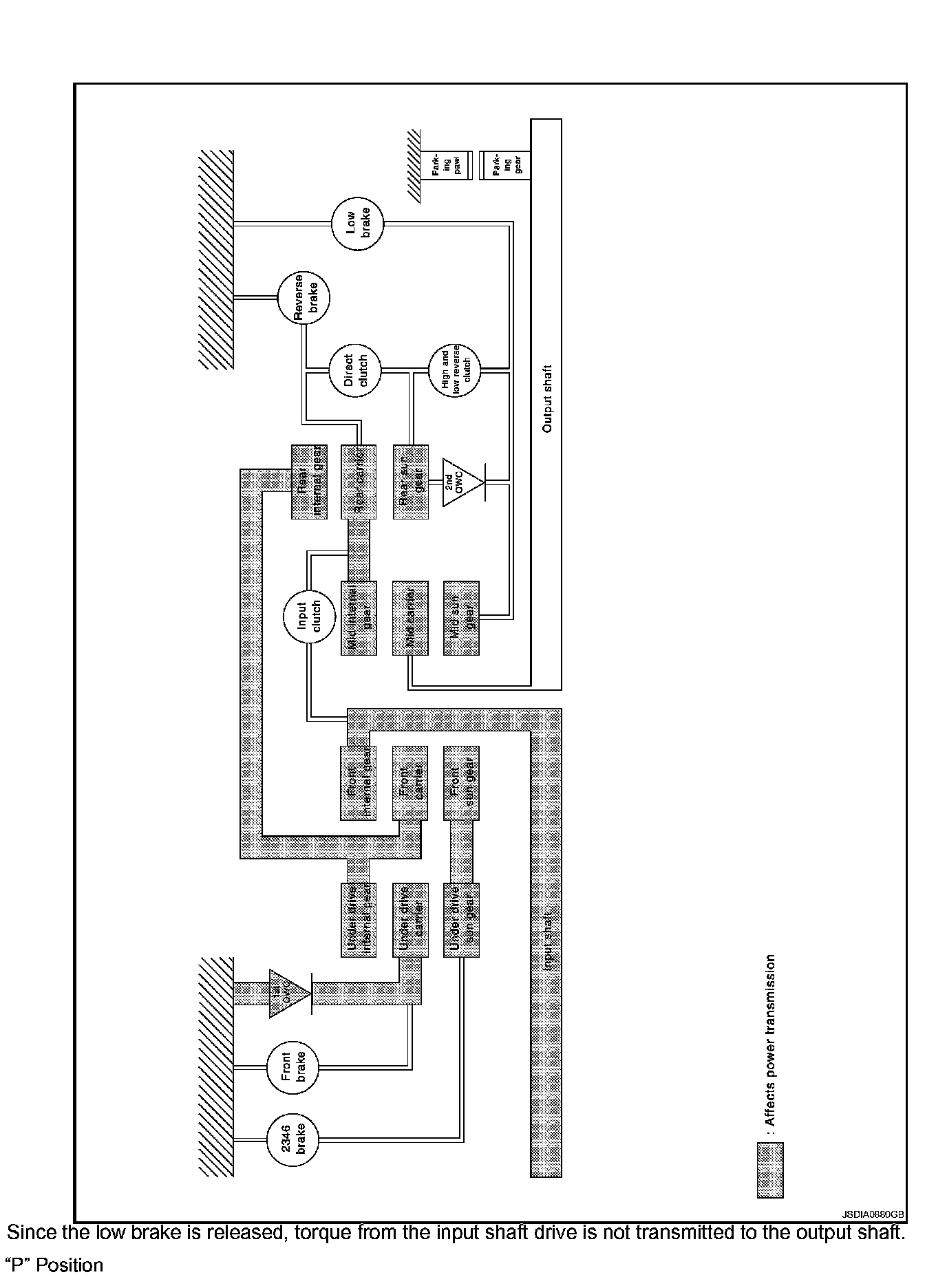 - The same as for the "N" position, since the low brake is released, so torque from the input shaft drive is not transmitted to the output shaft.