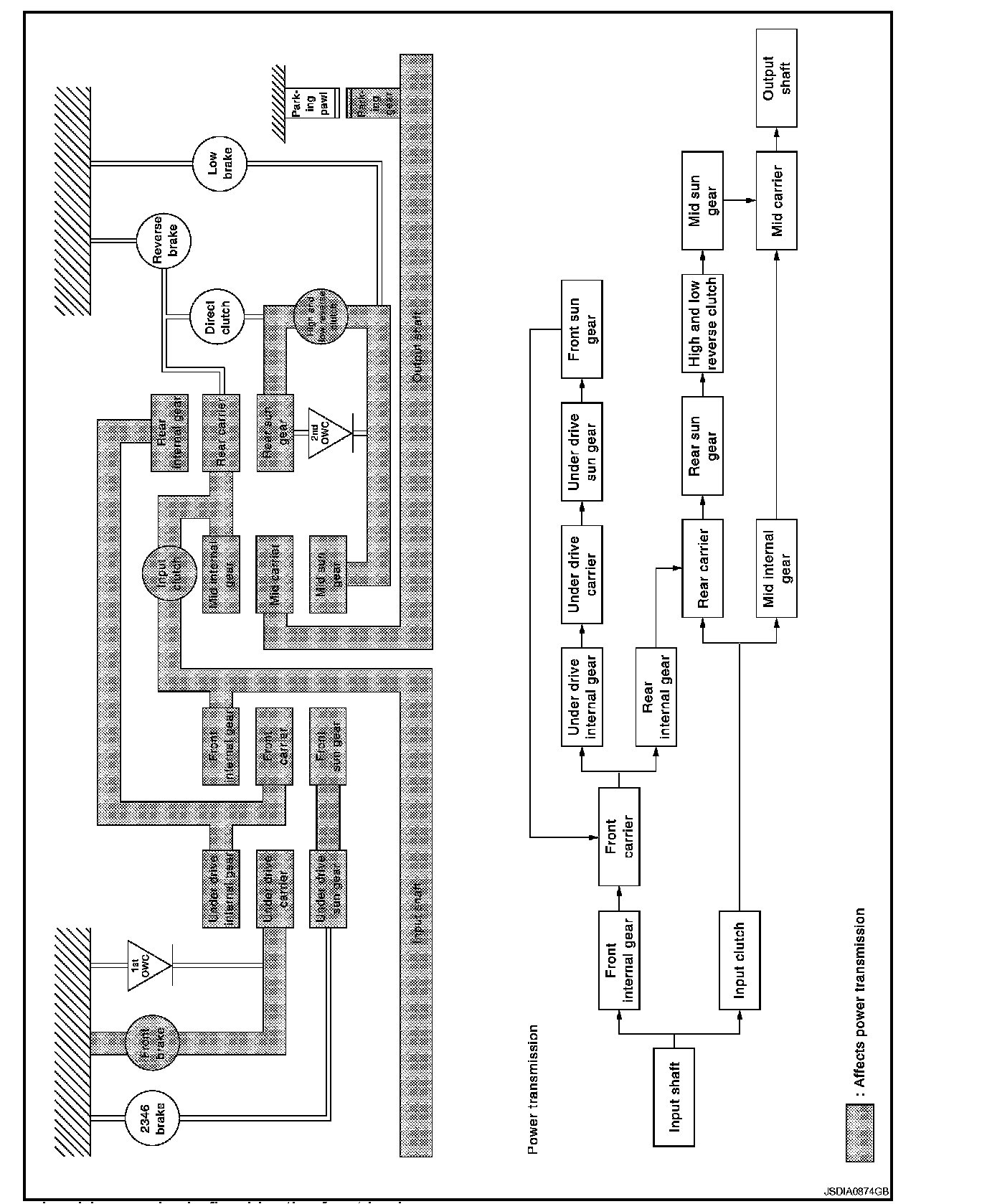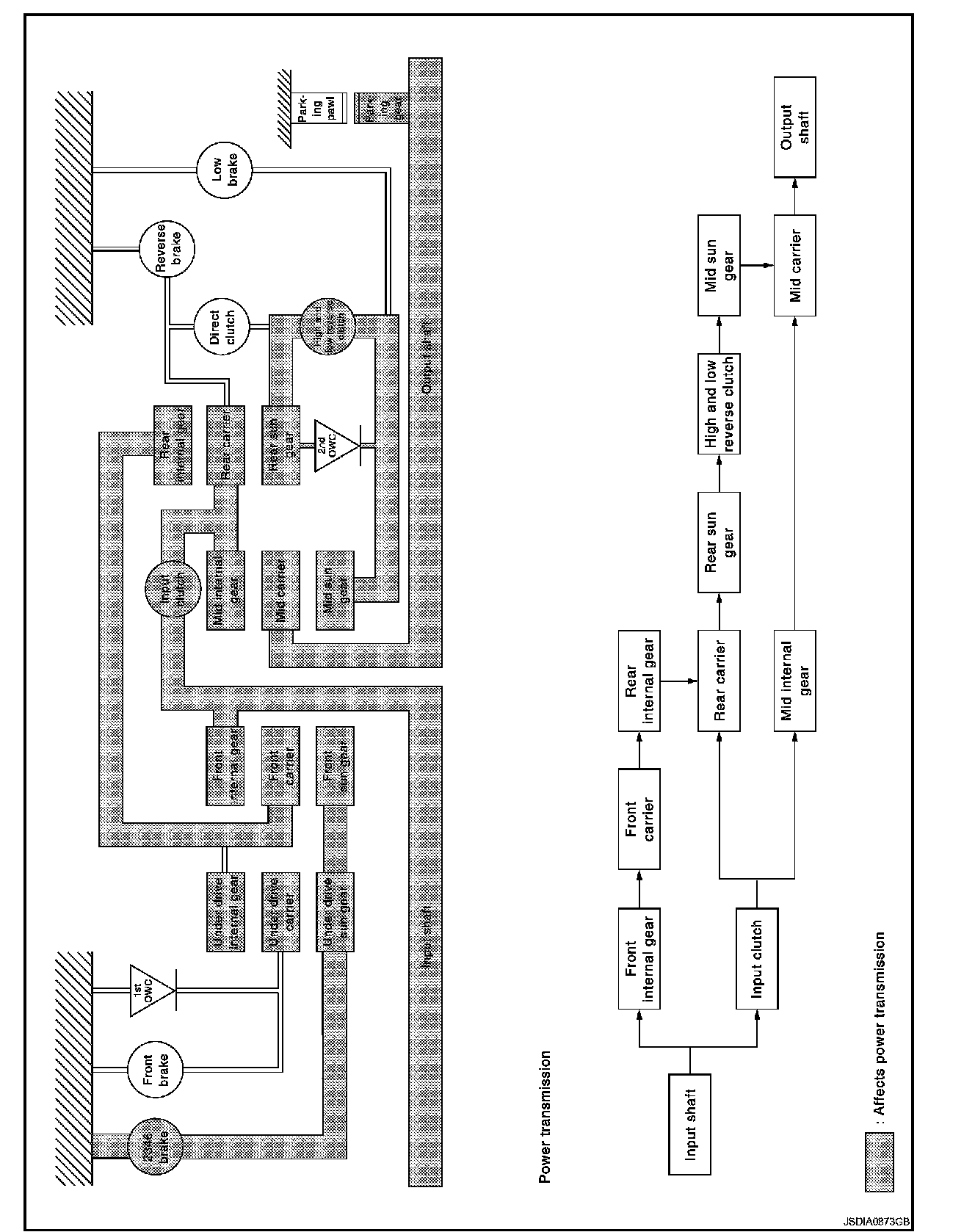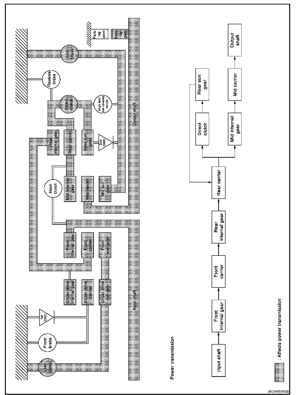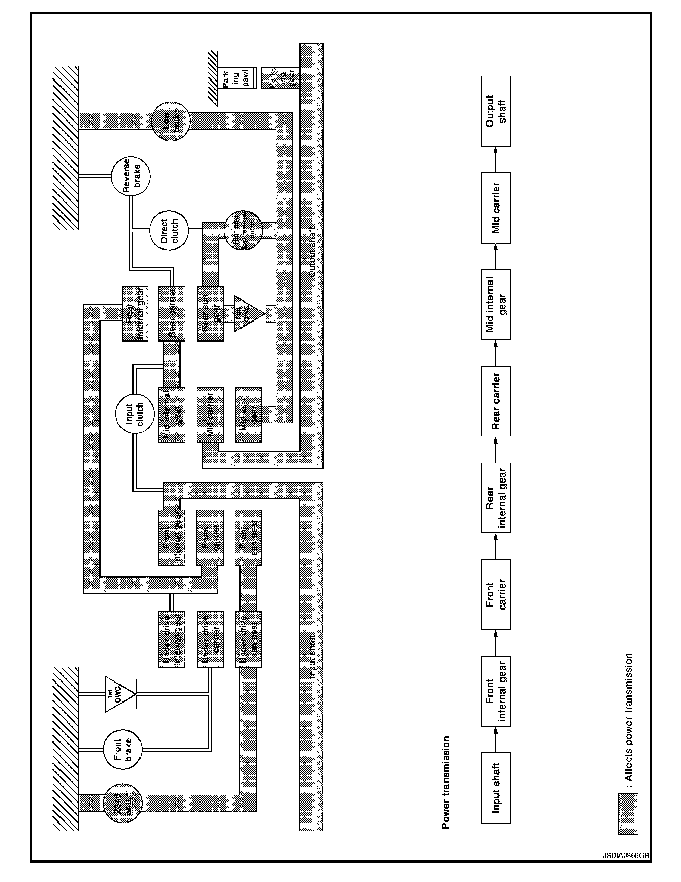 - The same as for the "N" position, since the low brake is released, so torque from the input shaft drive is not transmitted to the output shaft.