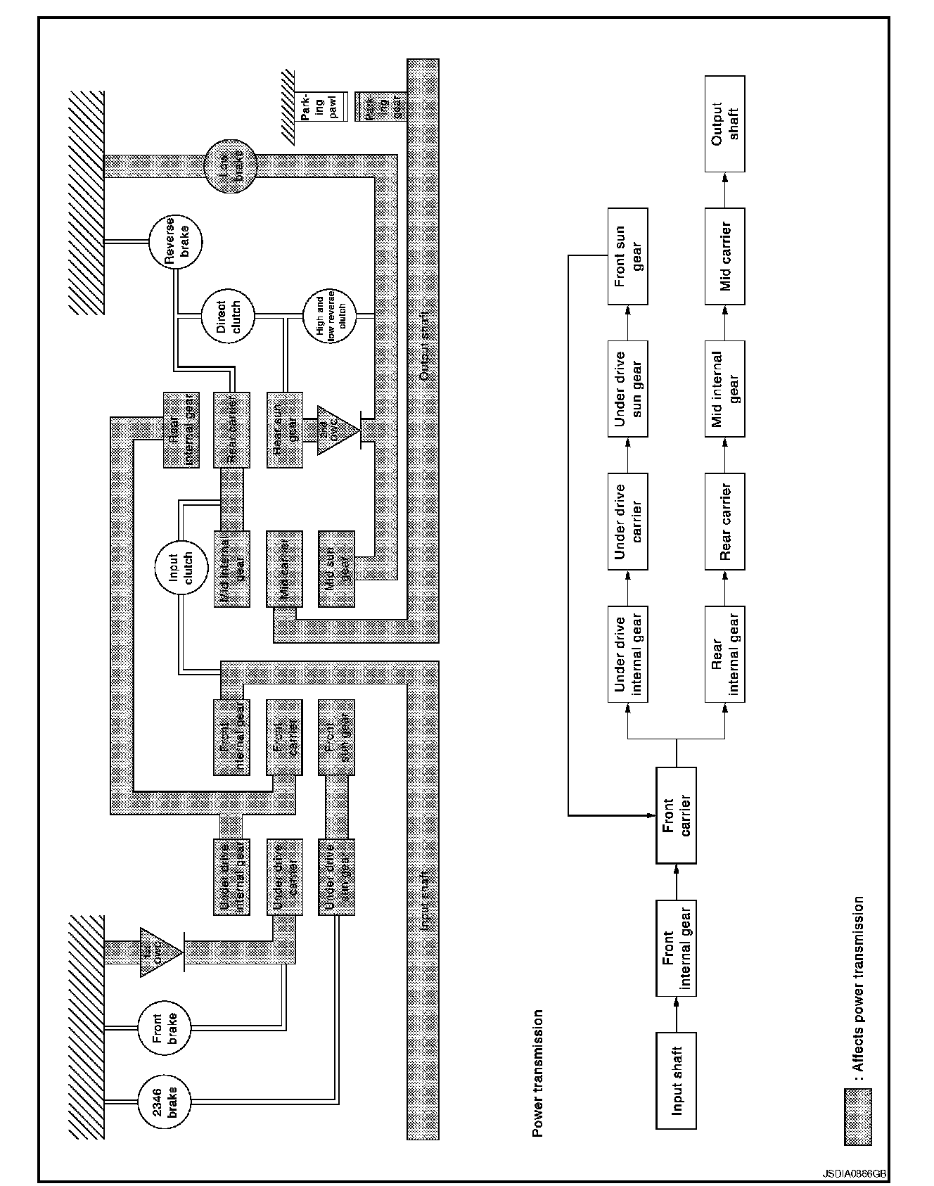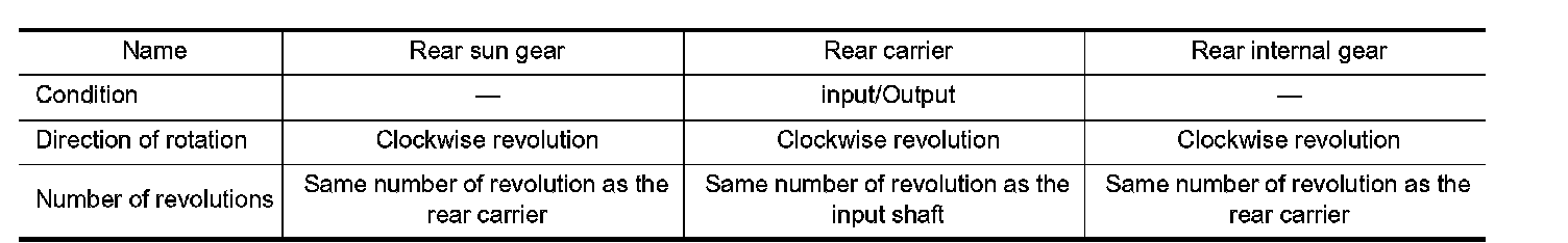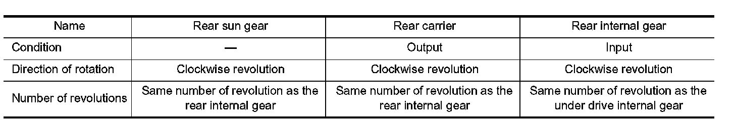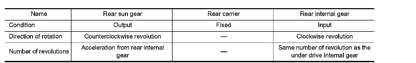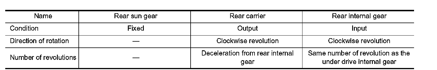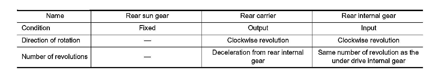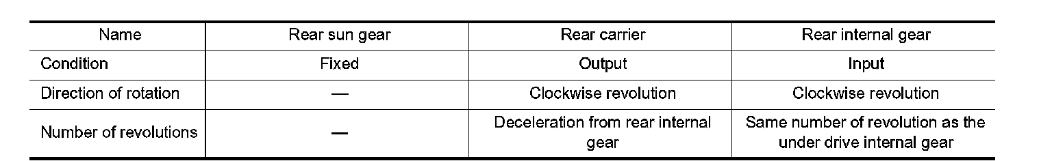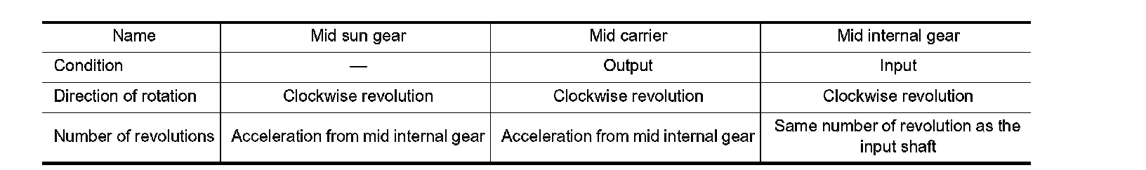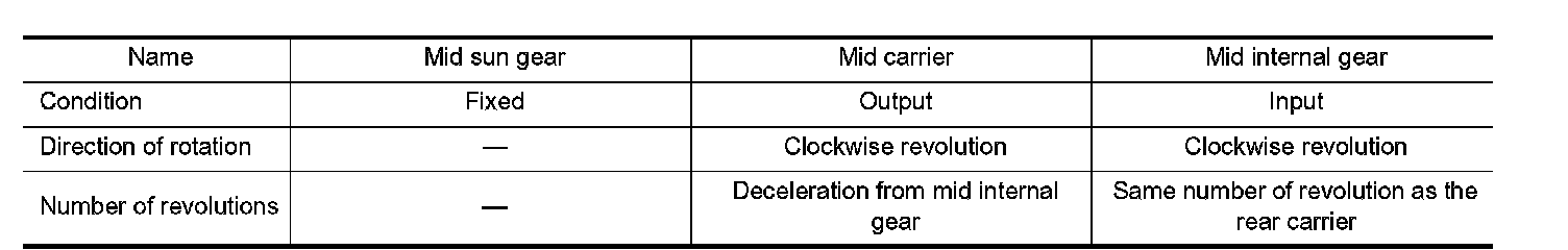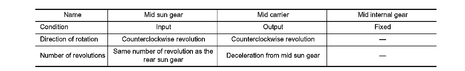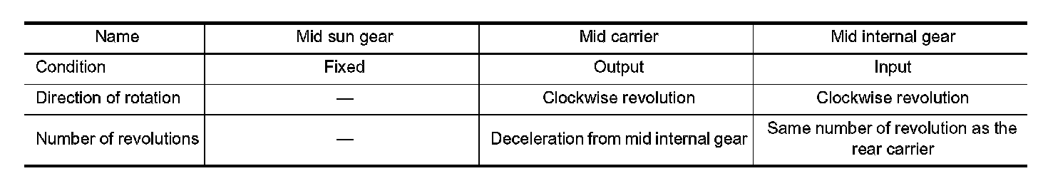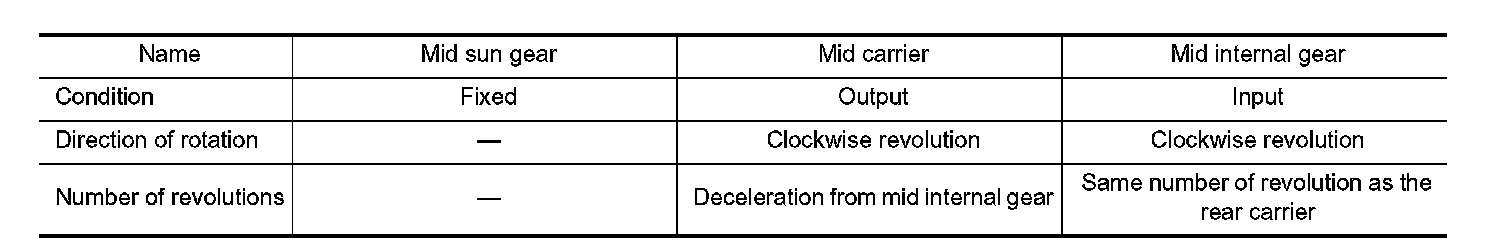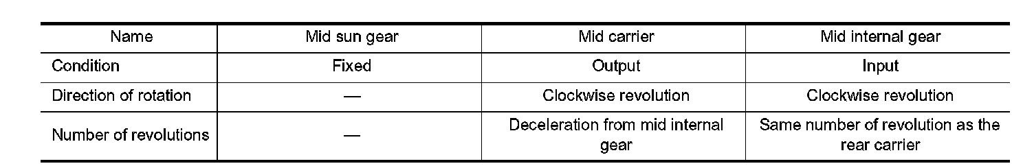 - The rear carrier and the mid internal gear are fixed by the reverse brake.
