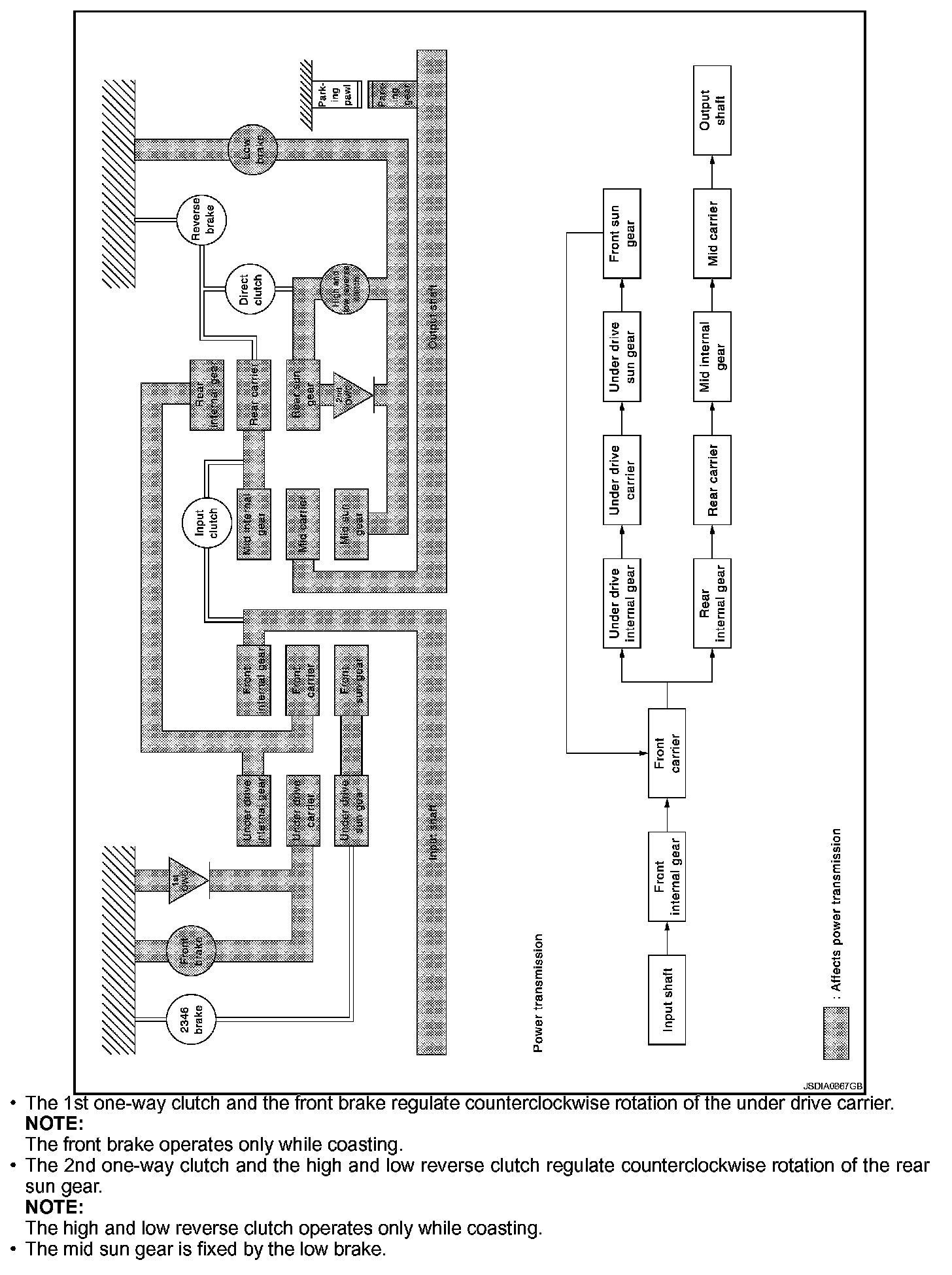 - The 1st one-way clutch and the front brake regulate counterclockwise rotation of the under drive carrier.