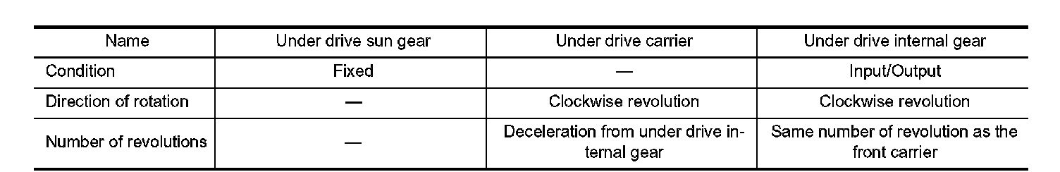 - The 1st one-way clutch regulates counterclockwise rotation of the under drive carrier.