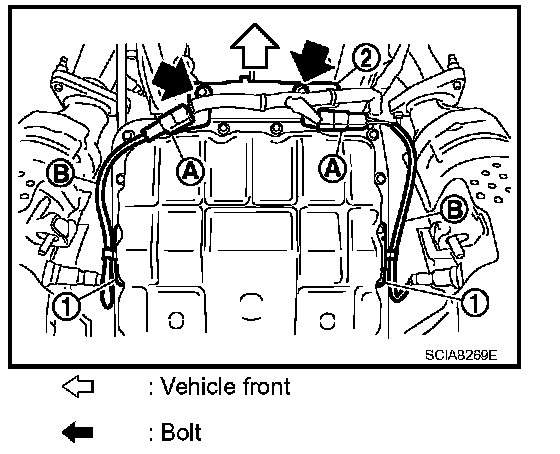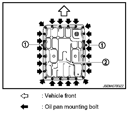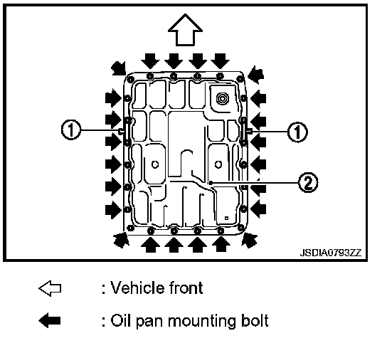 - Refer to the followings when installing oil pan (2) (with oil pan gasket) and clips (1) to transmission case.