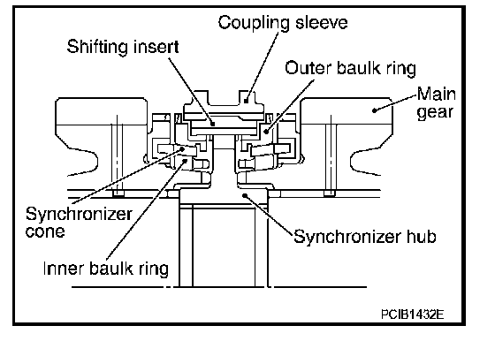 The 1st, 2nd and 3rd gears are equipped with a triple-cone synchronizer to reduce the operating force of the control lever.