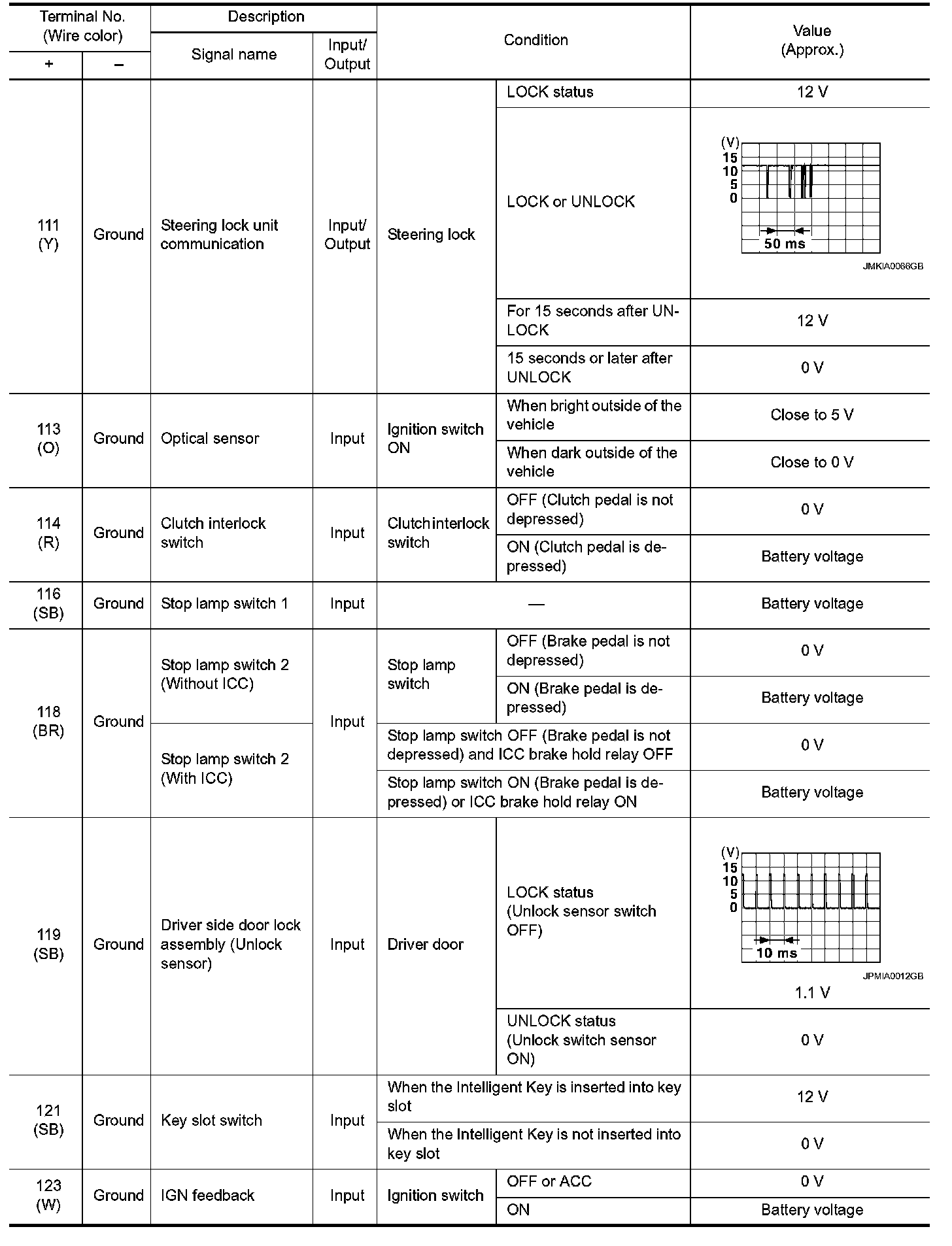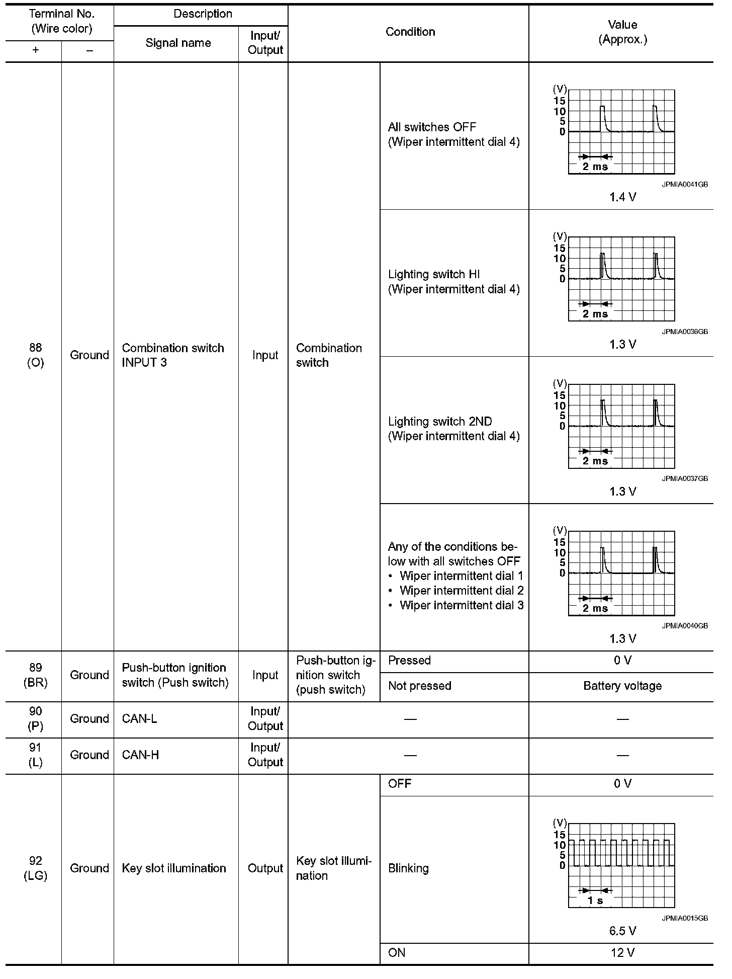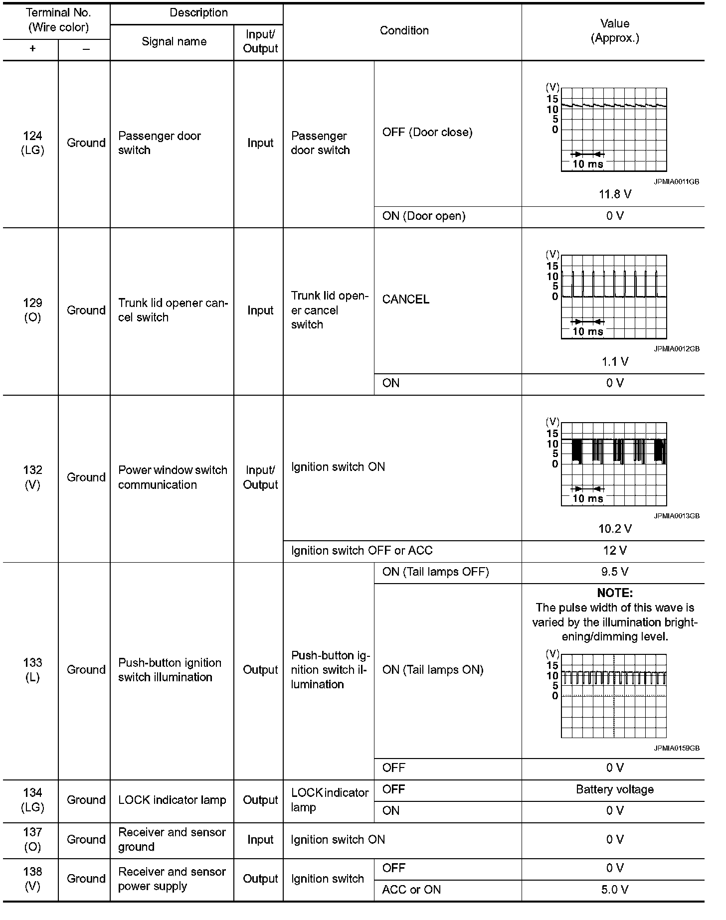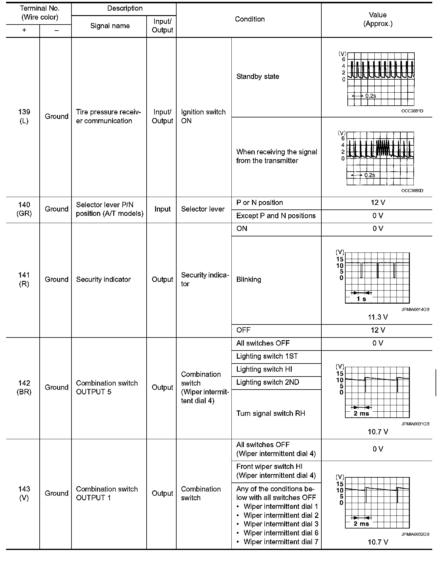 Pinout Values and Diagnostic Parameters