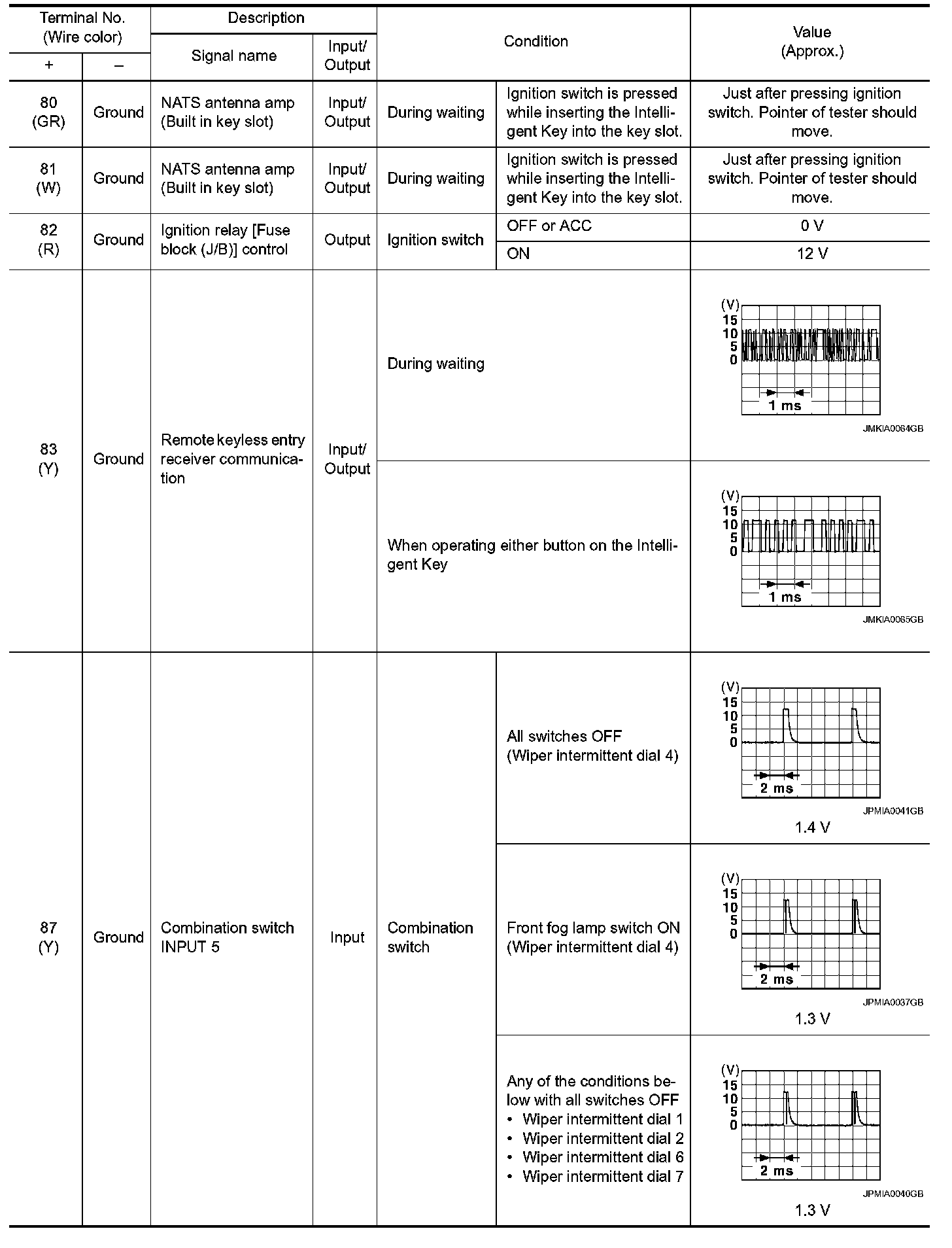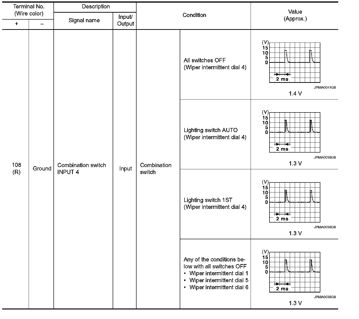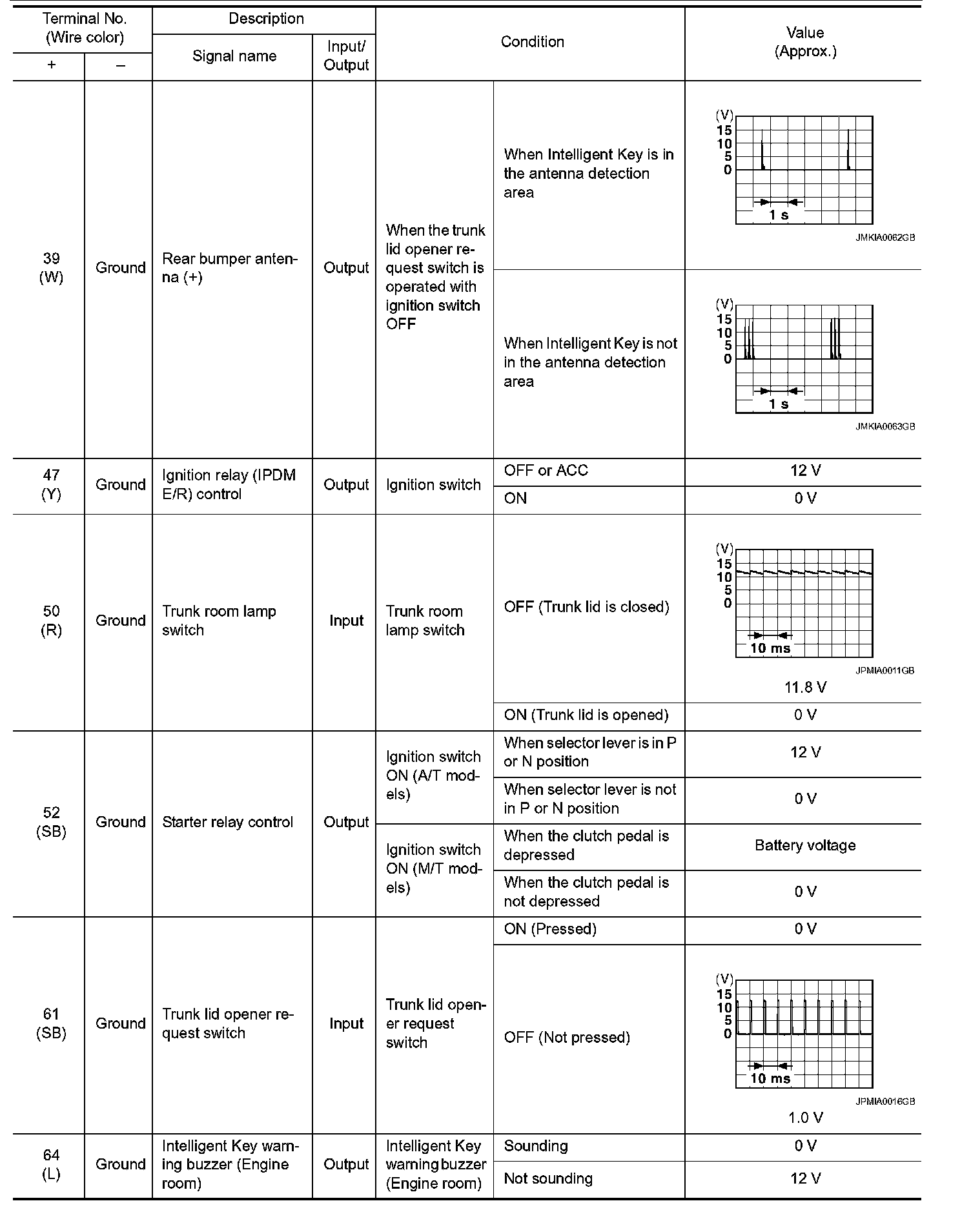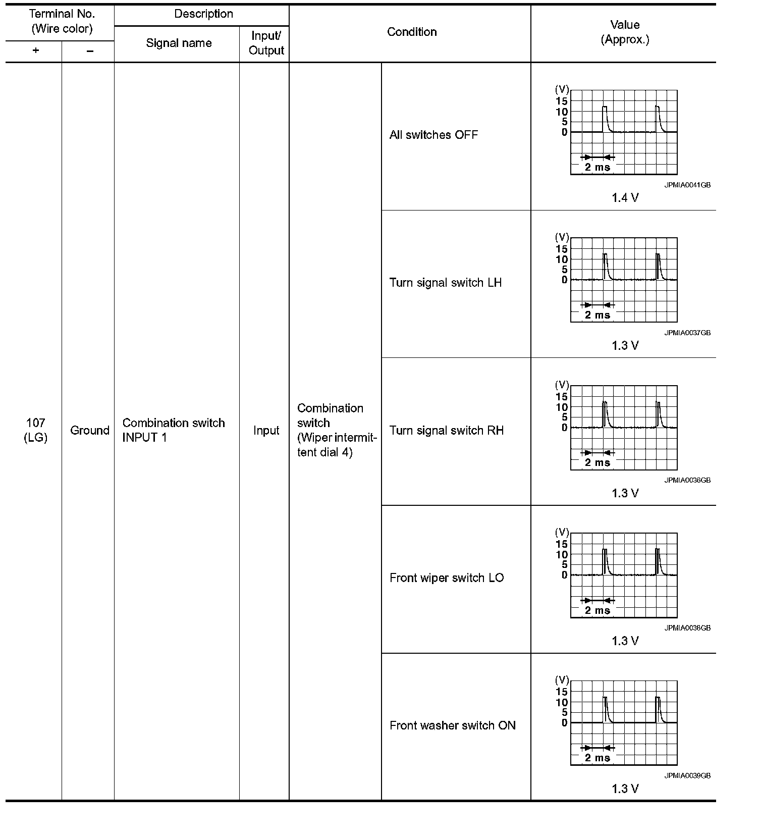 Pinout Values and Diagnostic Parameters