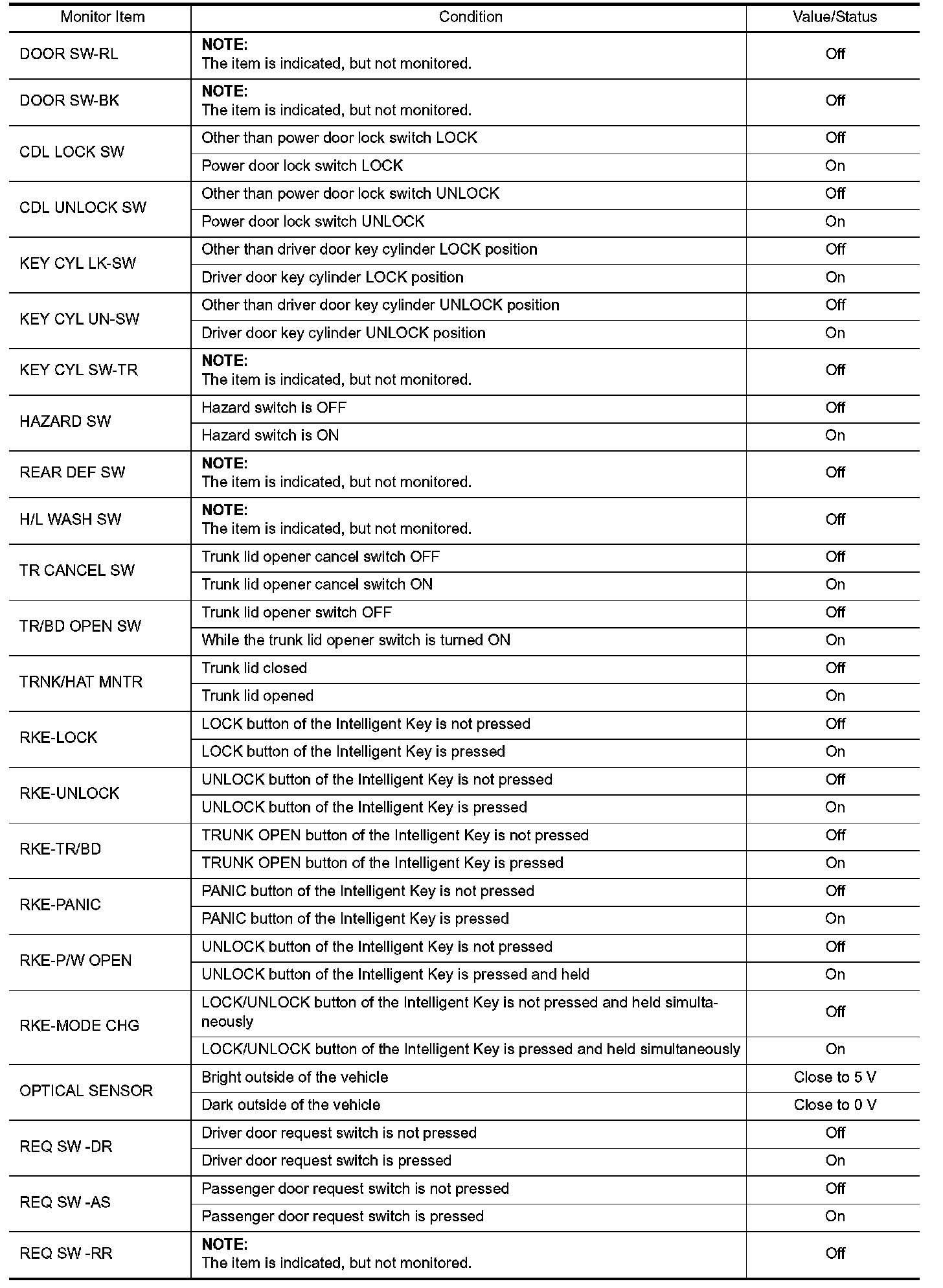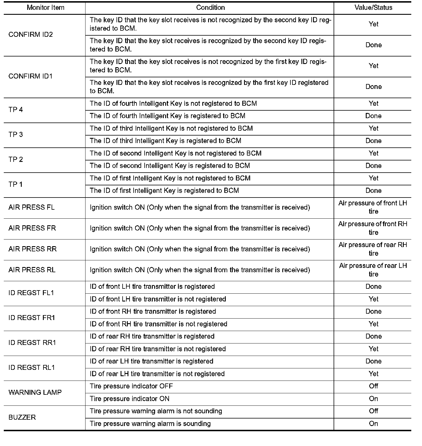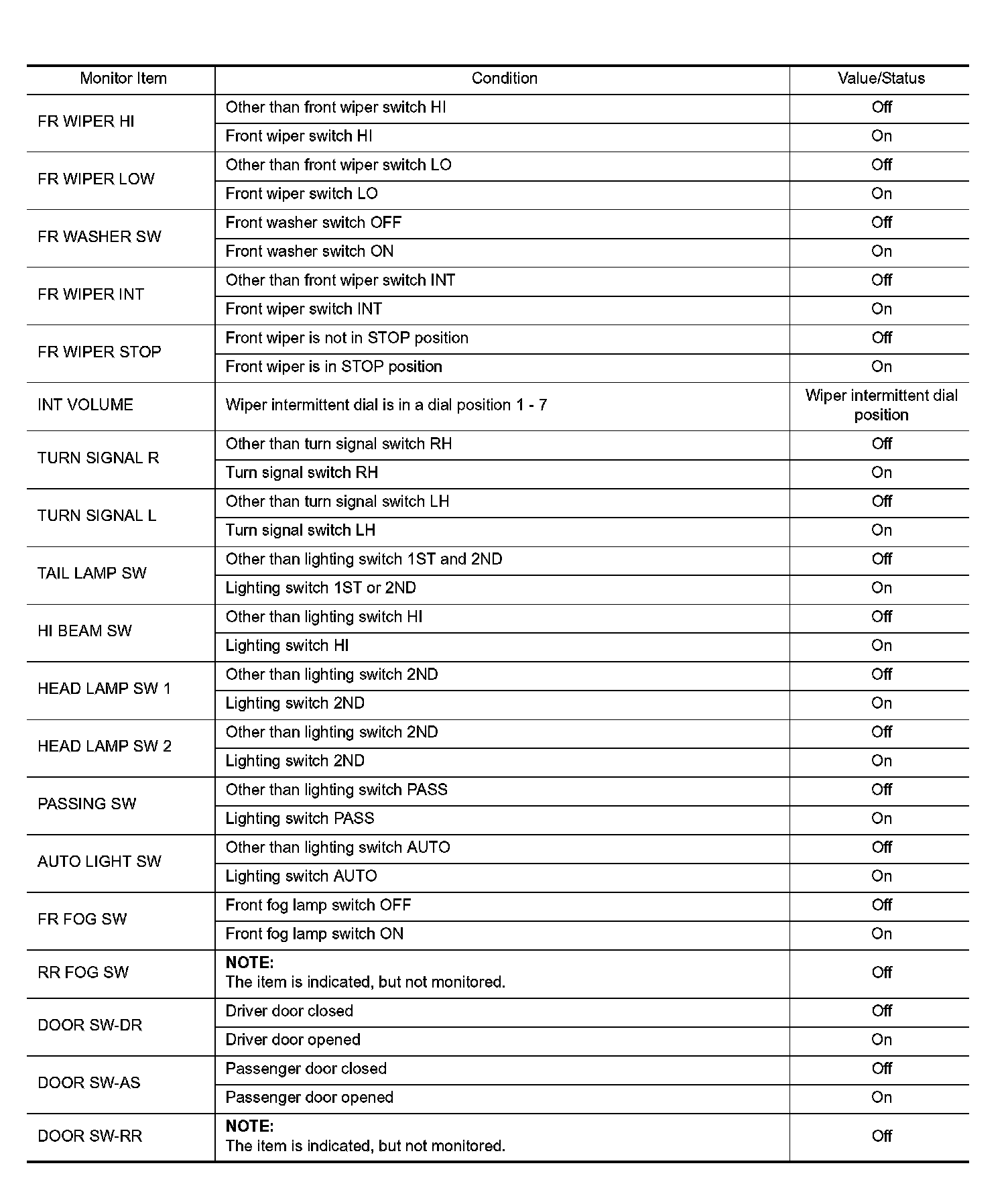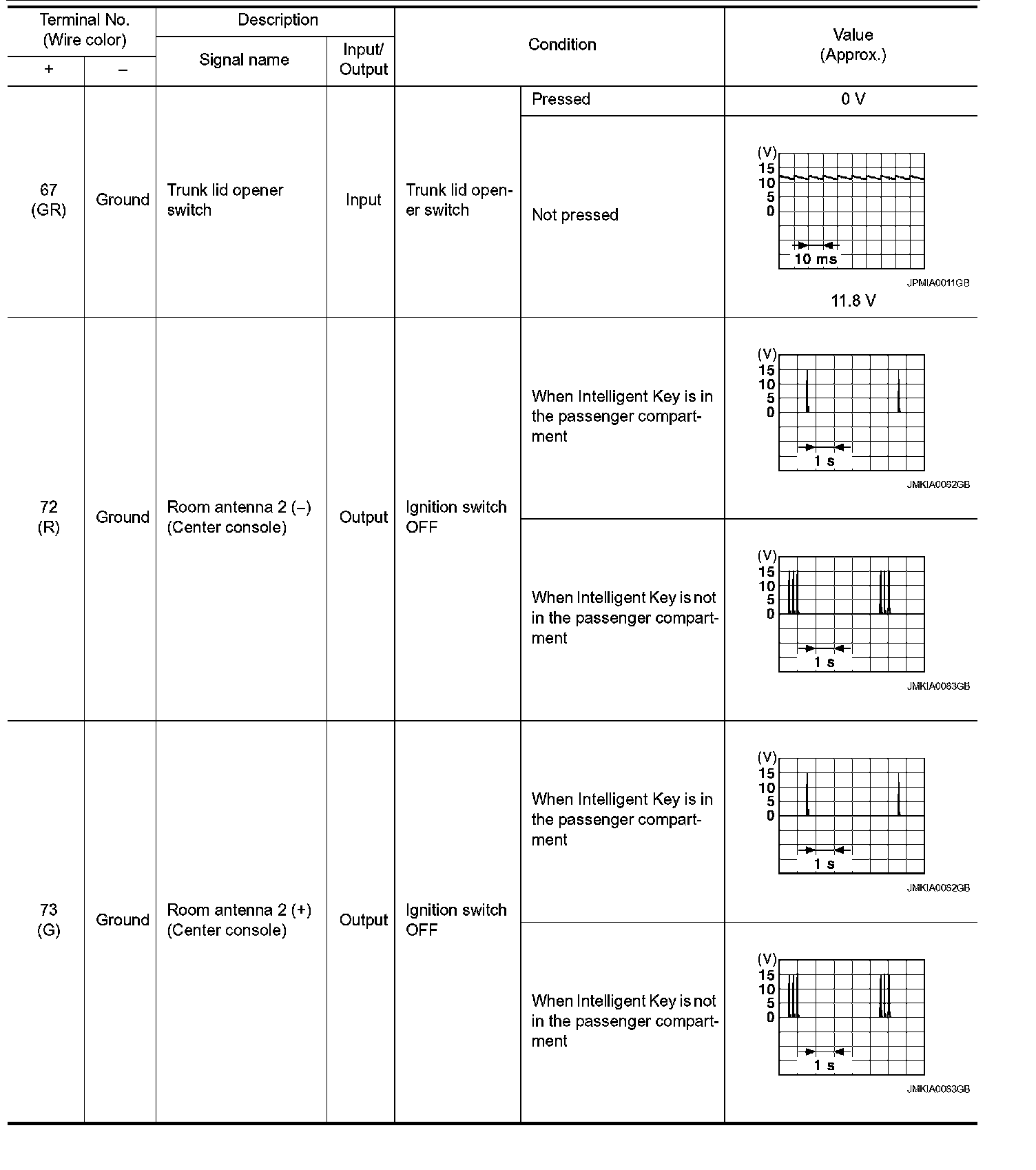 Pinout Values and Diagnostic Parameters
