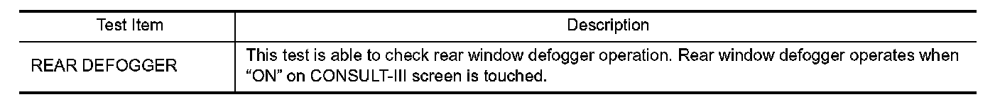 REAR WINDOW DEFOGGER : CONSULT-III Function (BCM - REAR DEFOGGER)