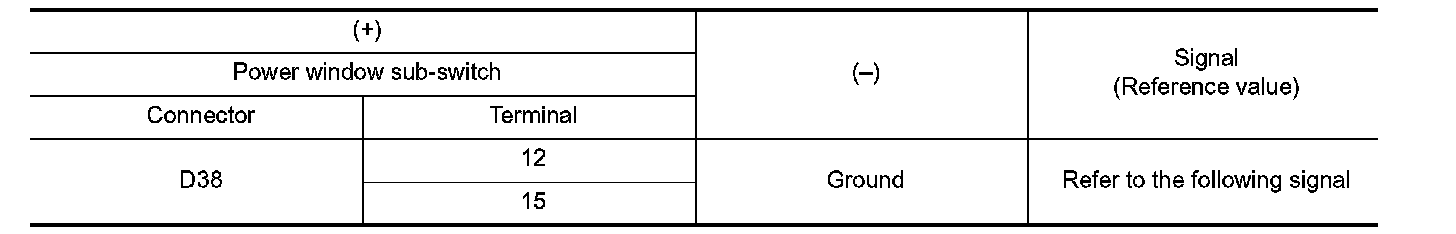 2. Check signal between power window sub-switch harness connector and ground with oscilloscope.