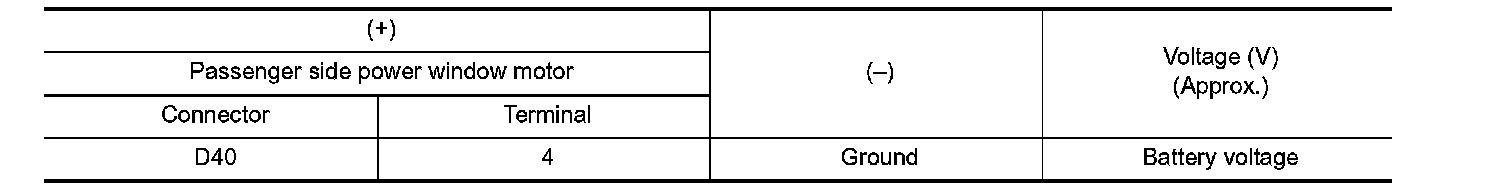 3. Check voltage between passenger side power window motor harness connector and ground.