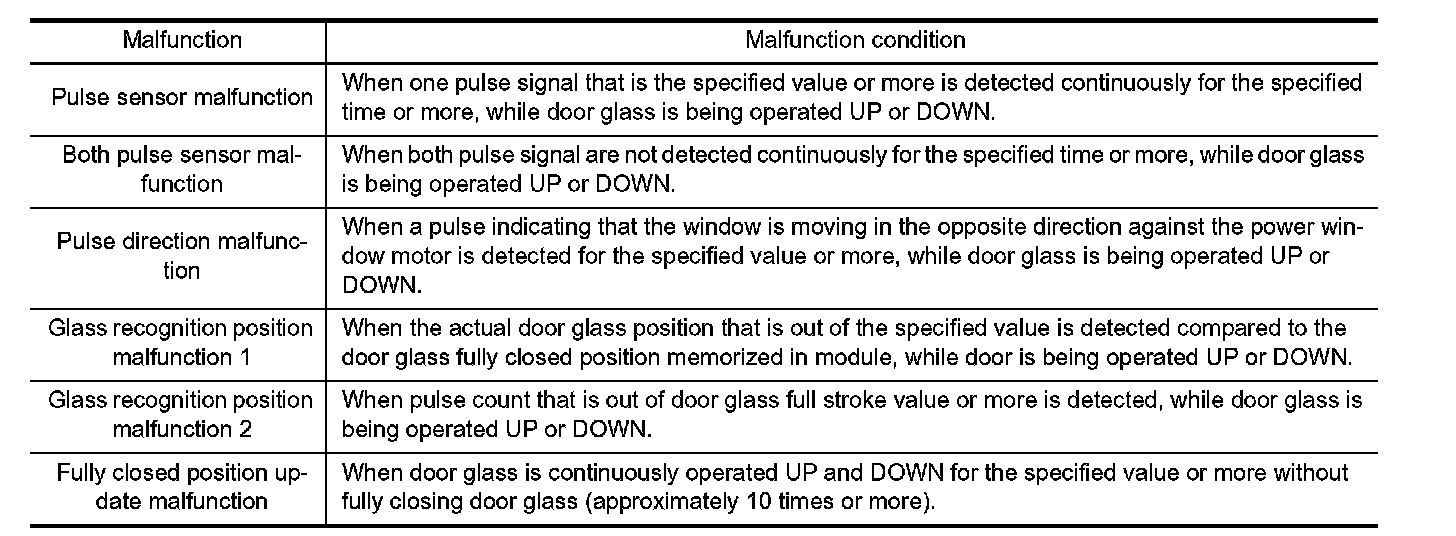 When fail-safe control is activated, perform initializing operation to recover. If a malfunction is detected in power window switch or more, fail-safe control is activated again.