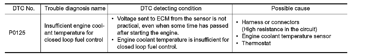 If DTC P0125 is displayed with P0117 or P0118, first perform the trouble diagnosis for DTC P0117 or