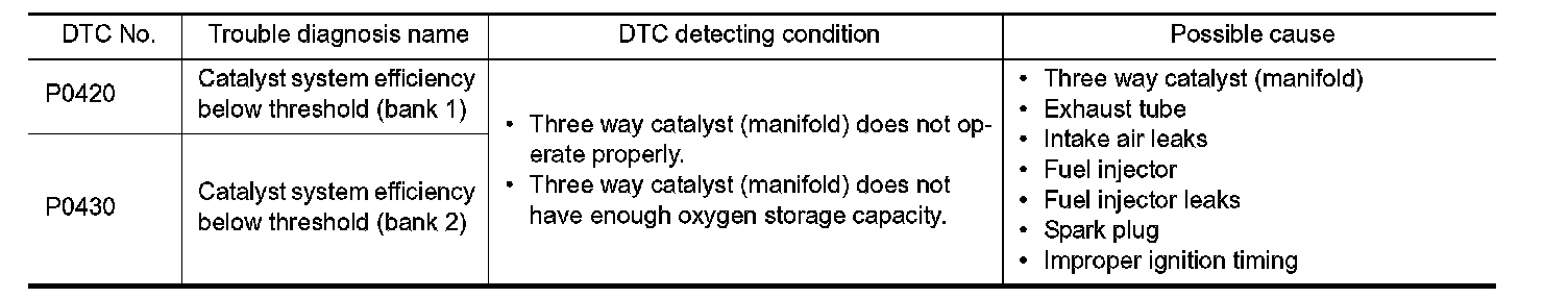 P0420, P0430 THREE WAY CATALYST FUNCTION