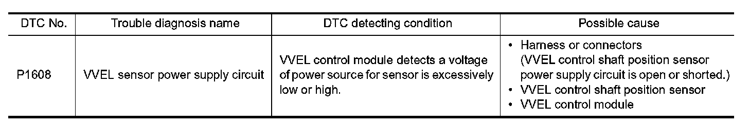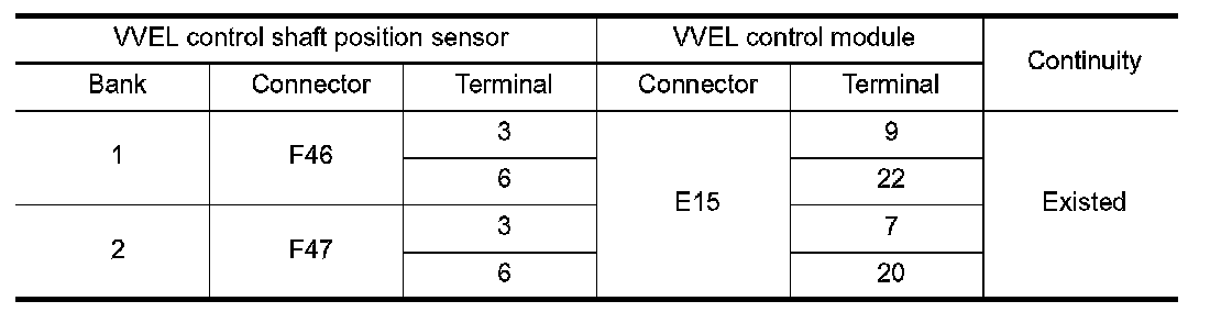 - Harness for open or short between VVEL control shaft position sensor and VVEL control module